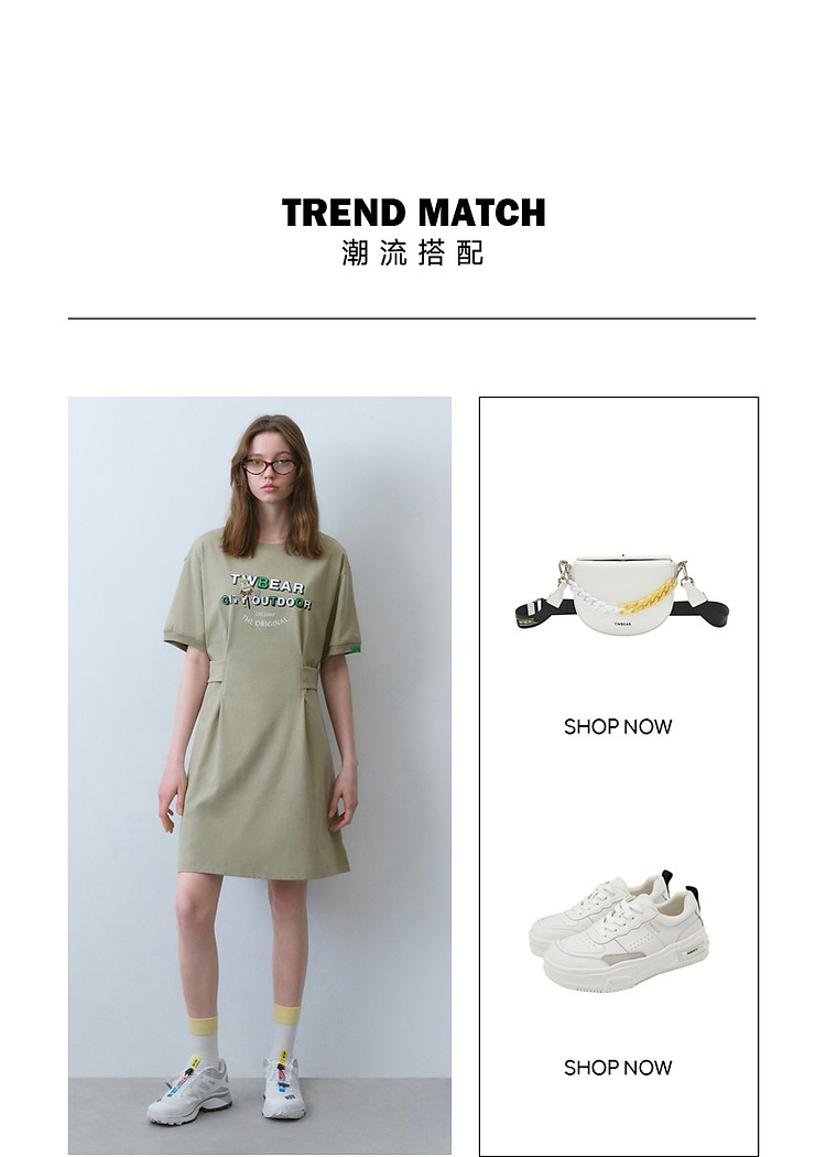 连衣裙小熊女装夏季圆领短袖T恤裙收腰裙时髦女 615297