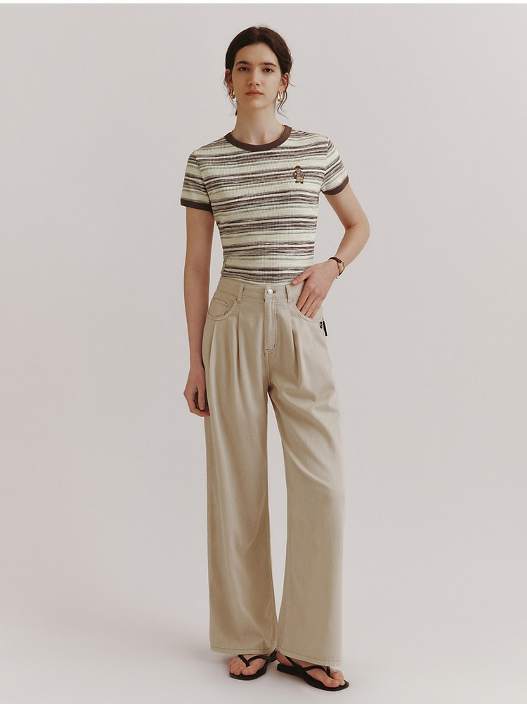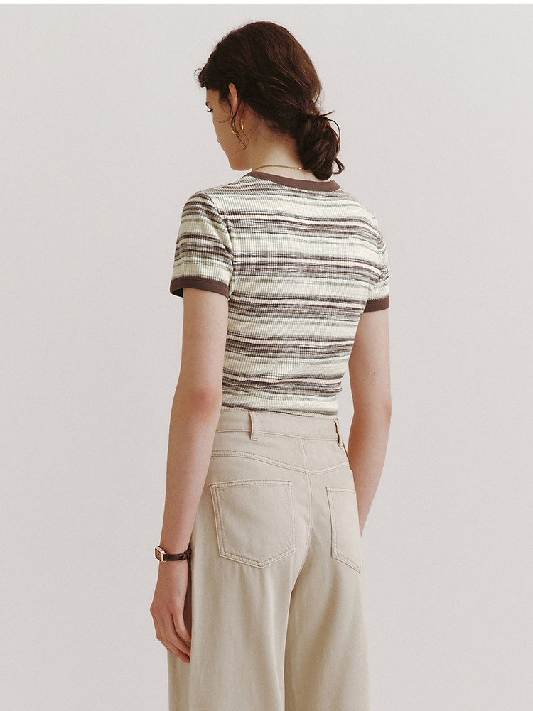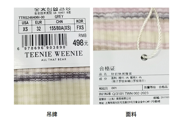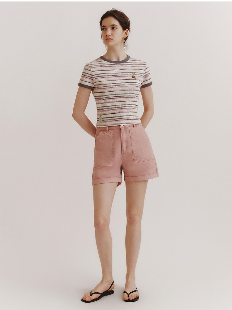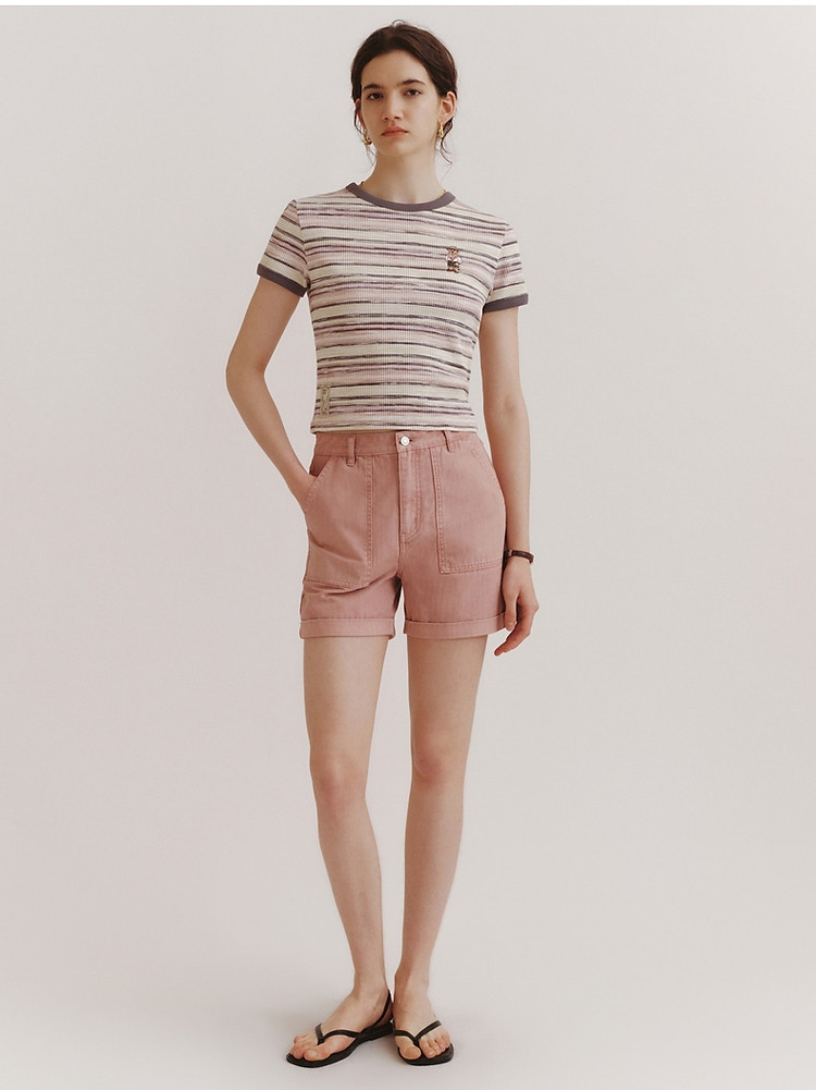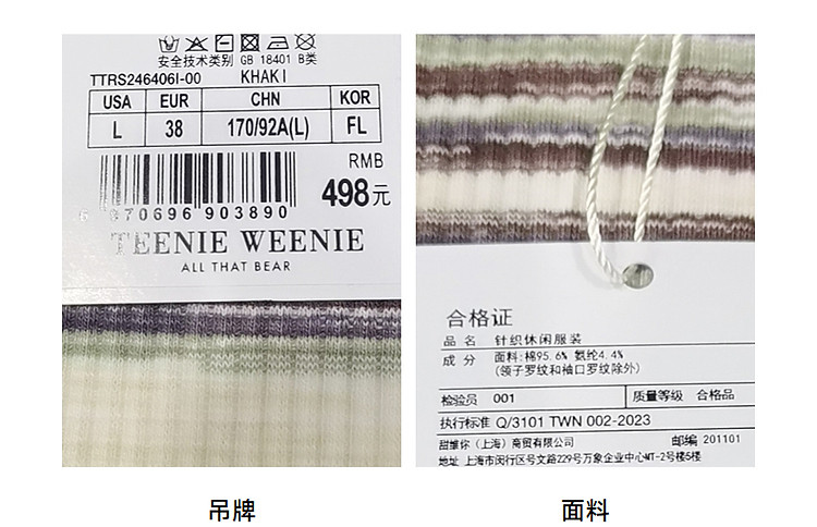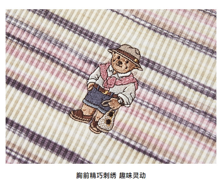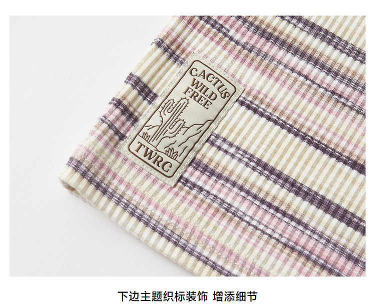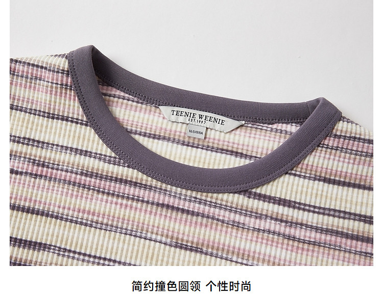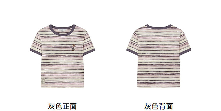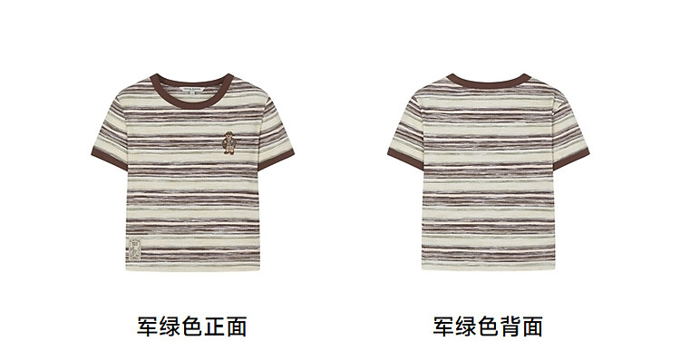 商品名称:T恤小熊女装夏短款撞色段彩条纹T恤短袖套头衫 581569