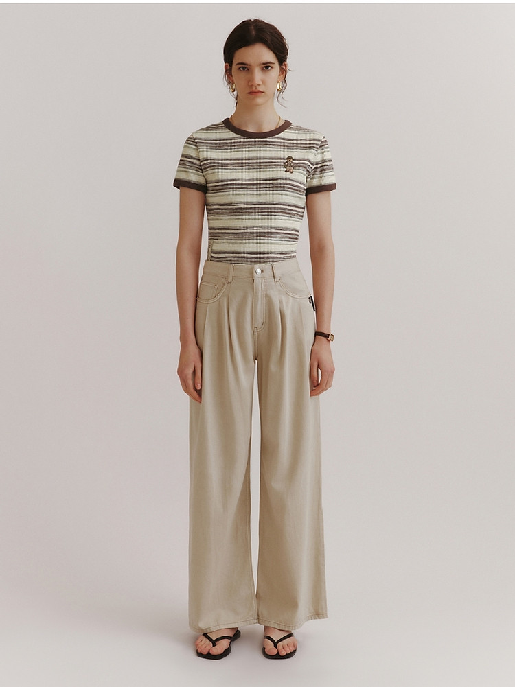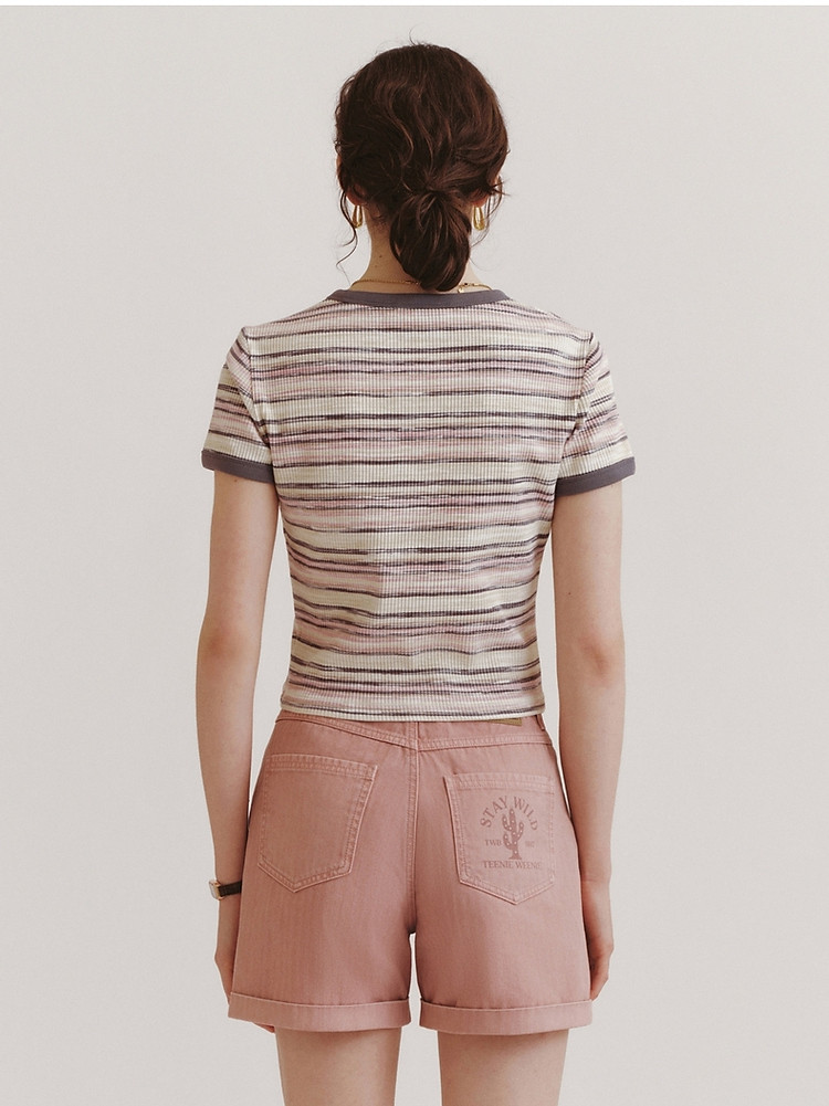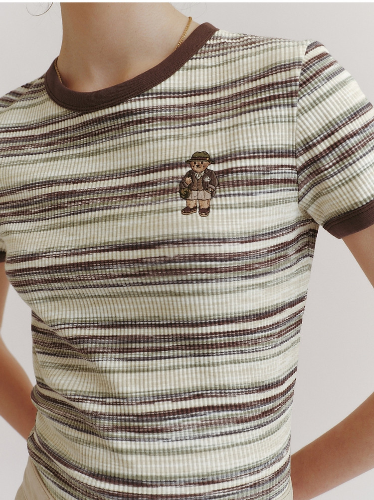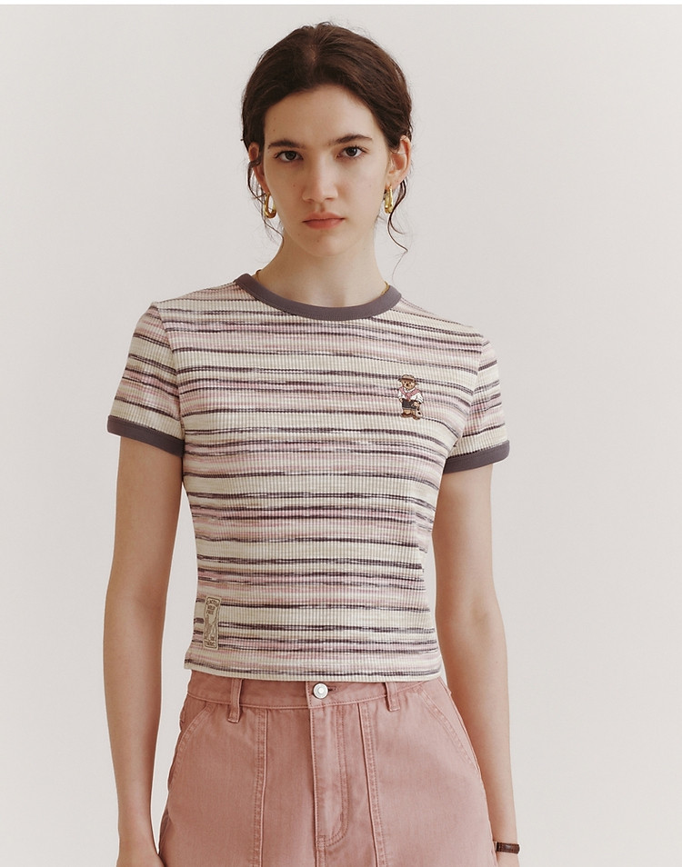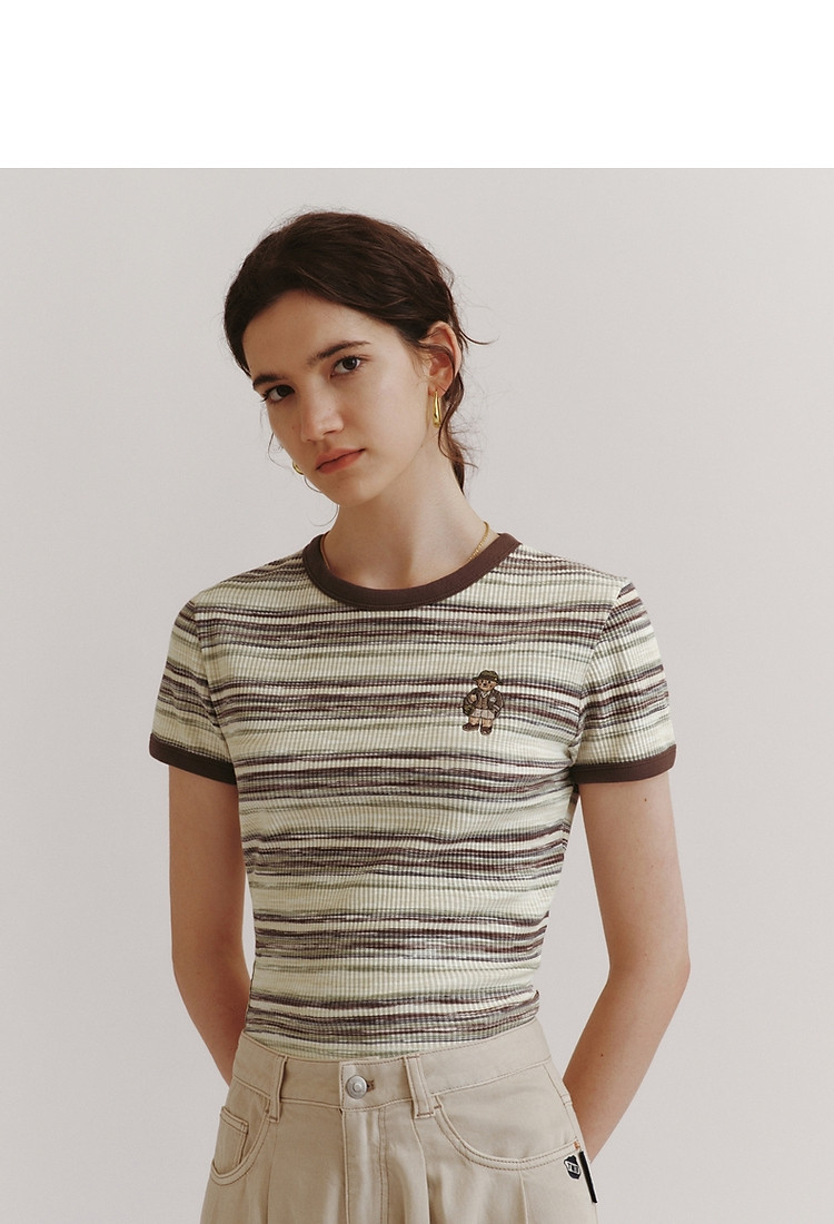 T恤小熊女装夏短款撞色段彩条纹T恤短袖套头衫 581569