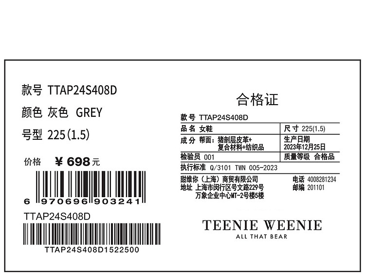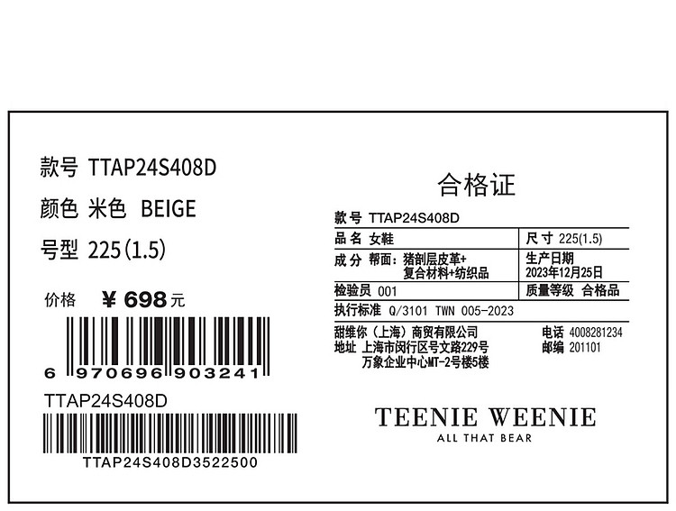 小熊撞色鞋子女春夏女鞋 064193