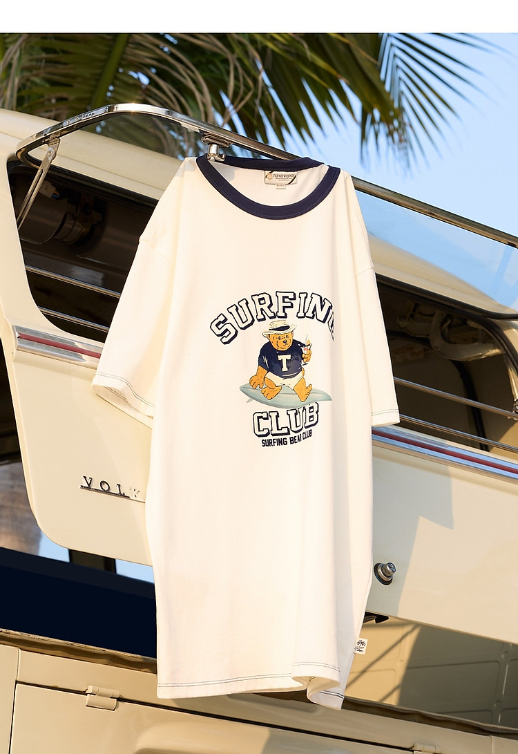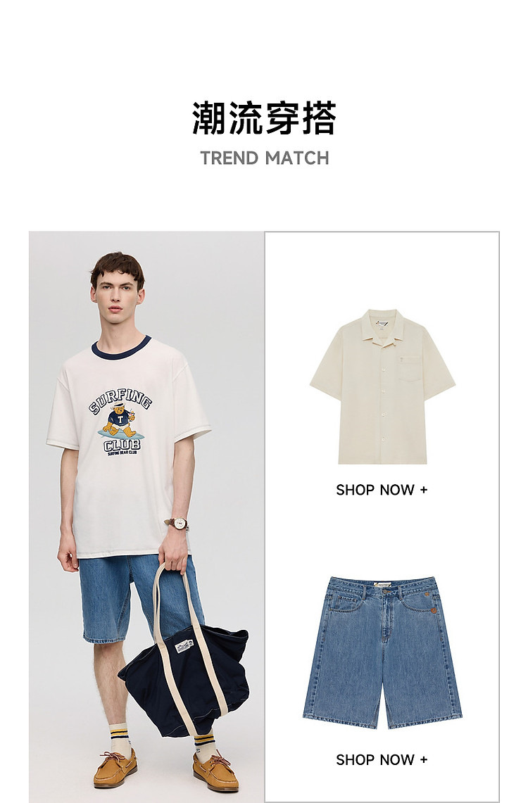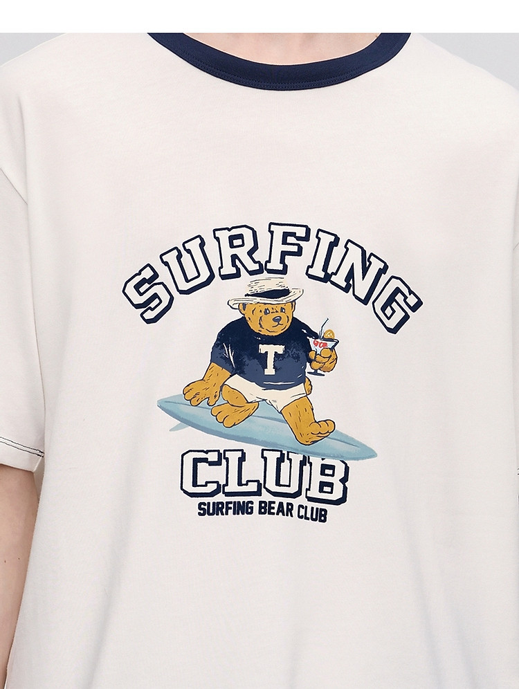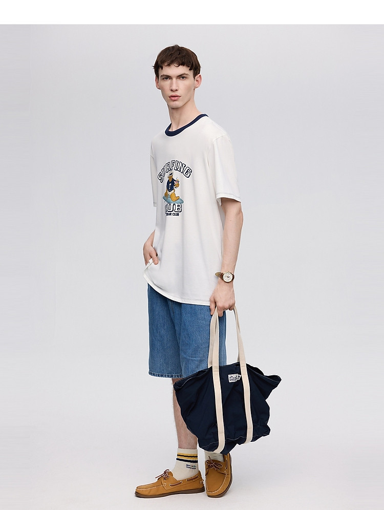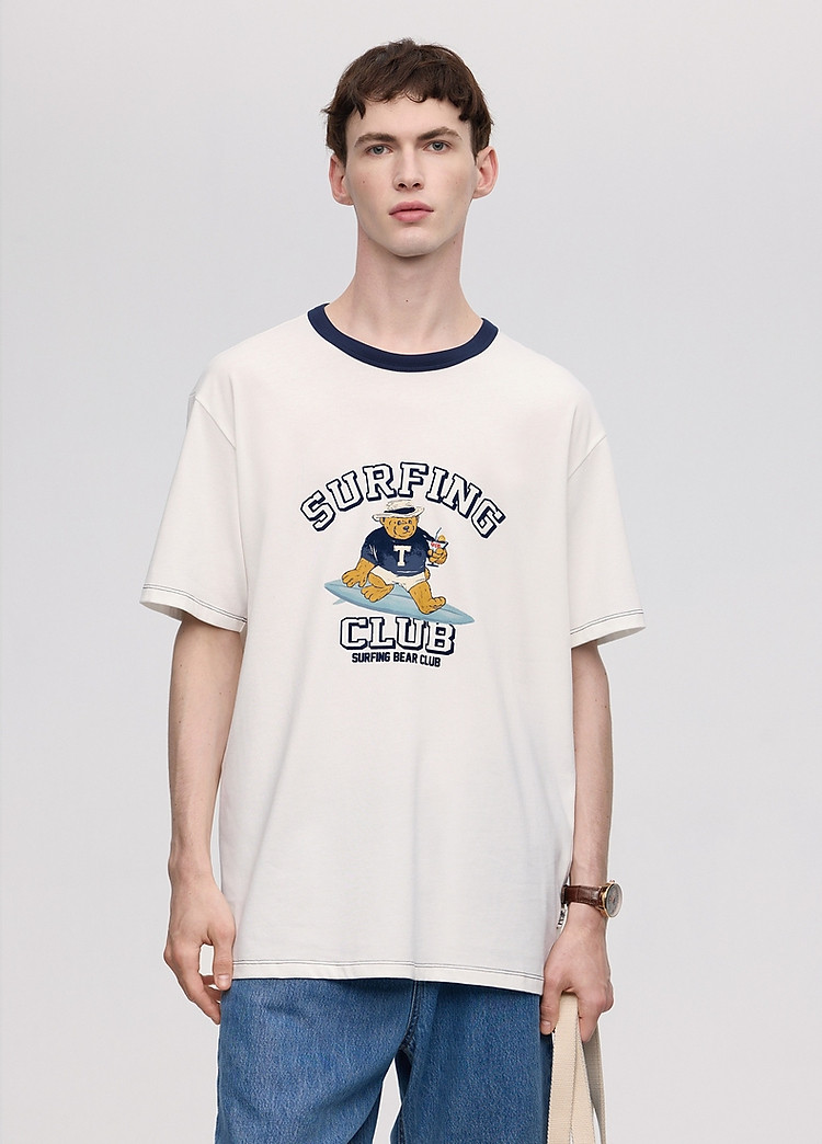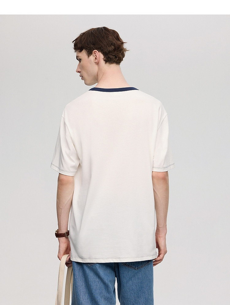 小熊男装简约时尚潮流白色T恤夏季学院撞色圆领休闲男士t恤短袖 504577