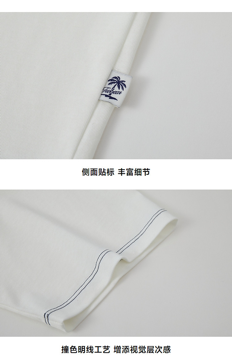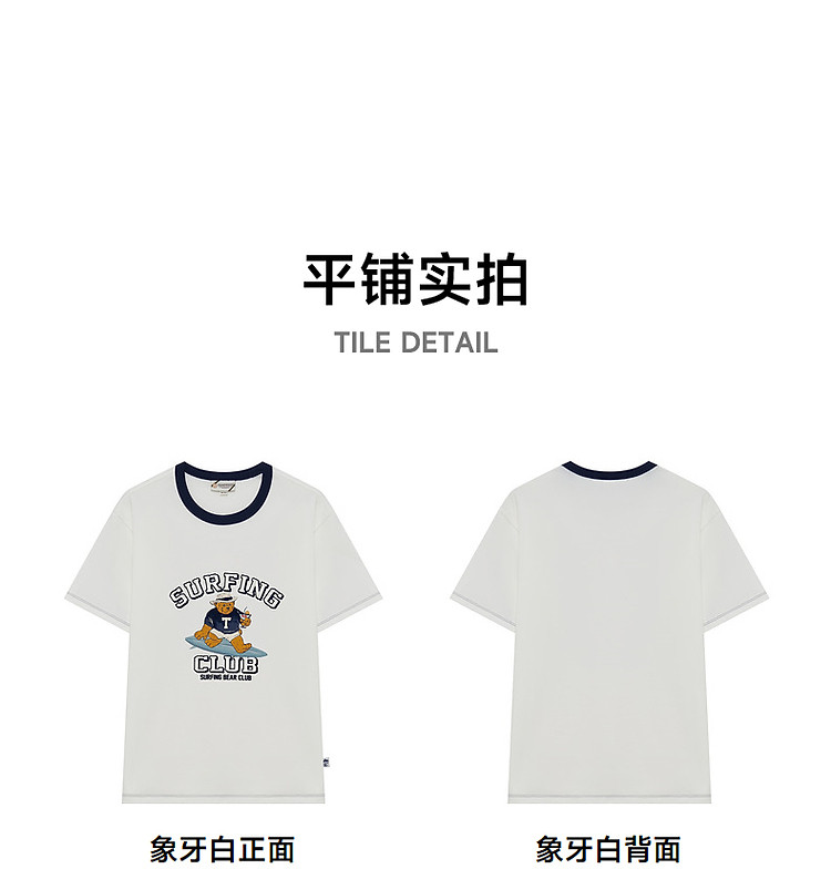 商品名称:小熊男装简约时尚潮流白色T恤夏季学院撞色圆领休闲男士t恤短袖 504577