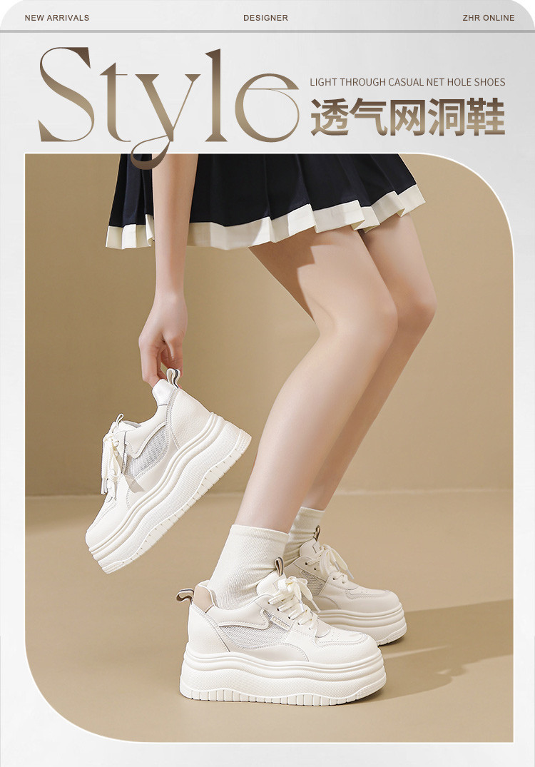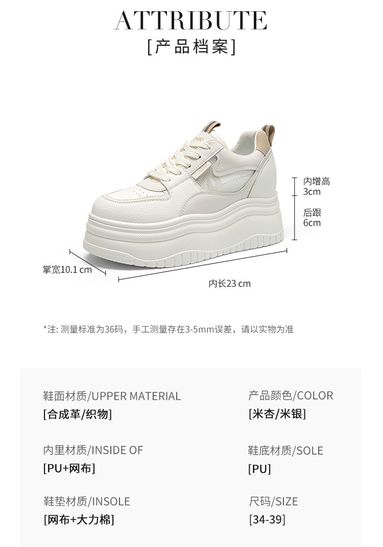 商品名称:【秒高6.5】透气休闲鞋女网面鞋夏款2024百搭小白鞋女鞋子 438144
