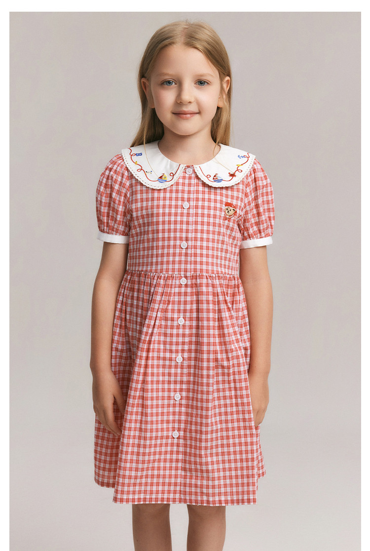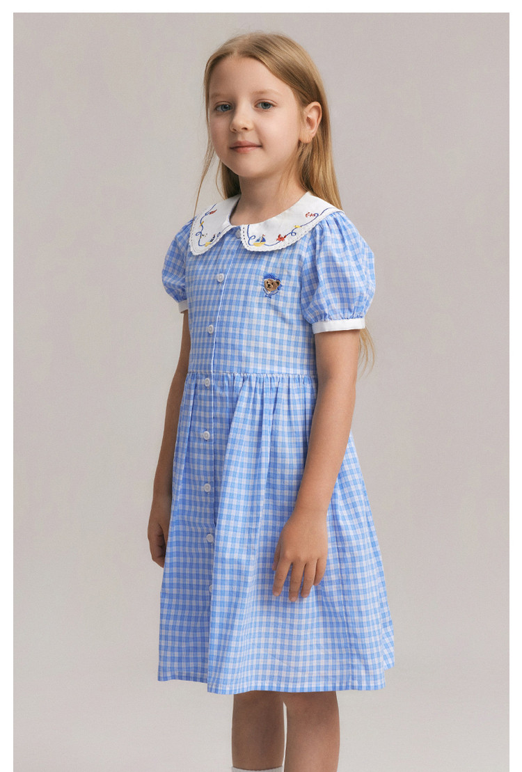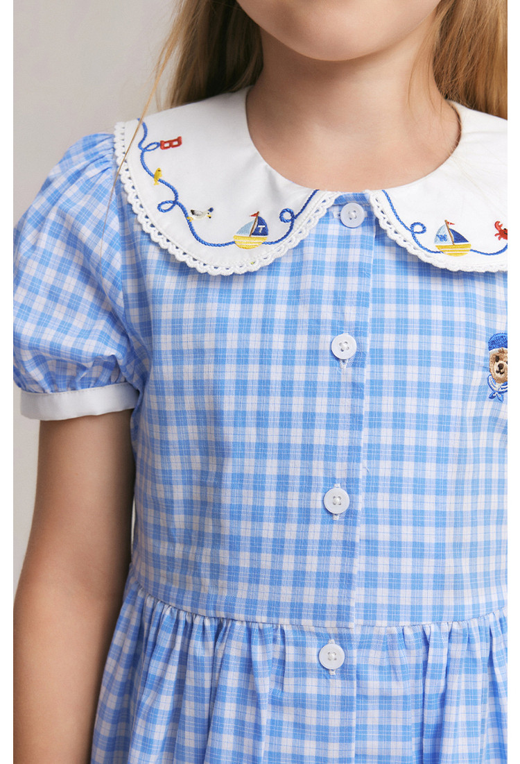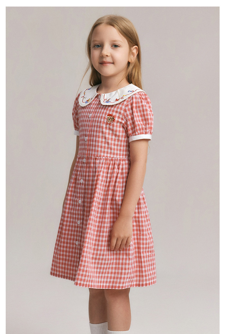 商品名称:小熊童装夏季女童清爽翻领格纹连衣裙 542721