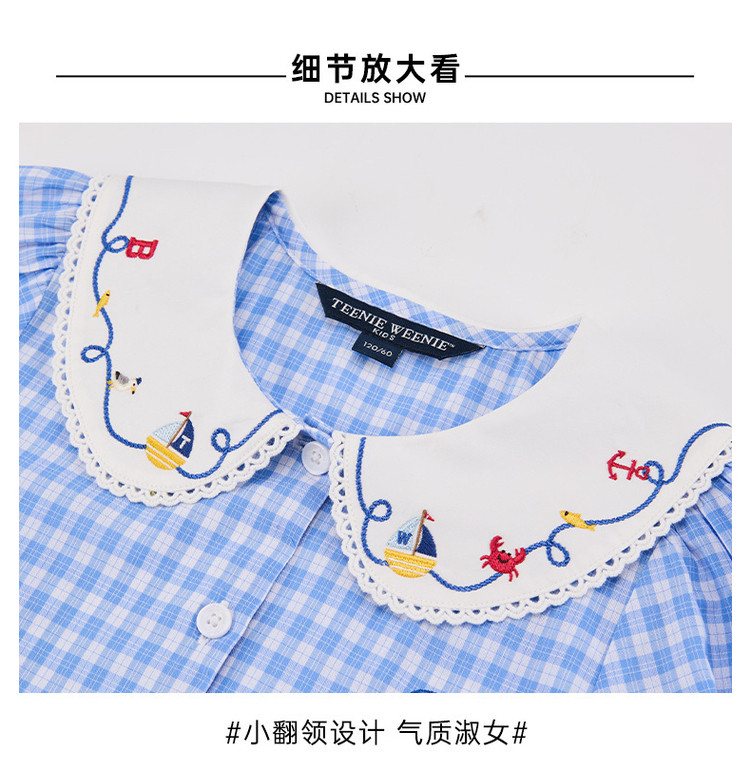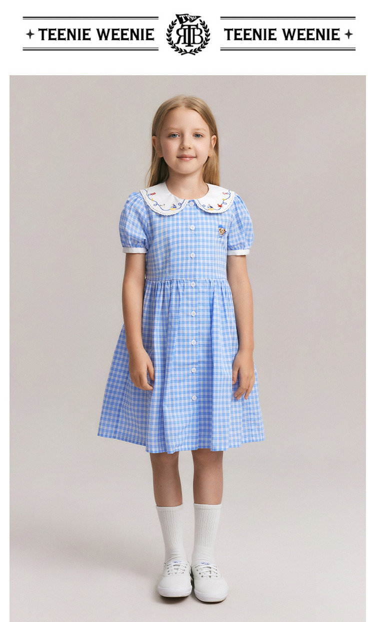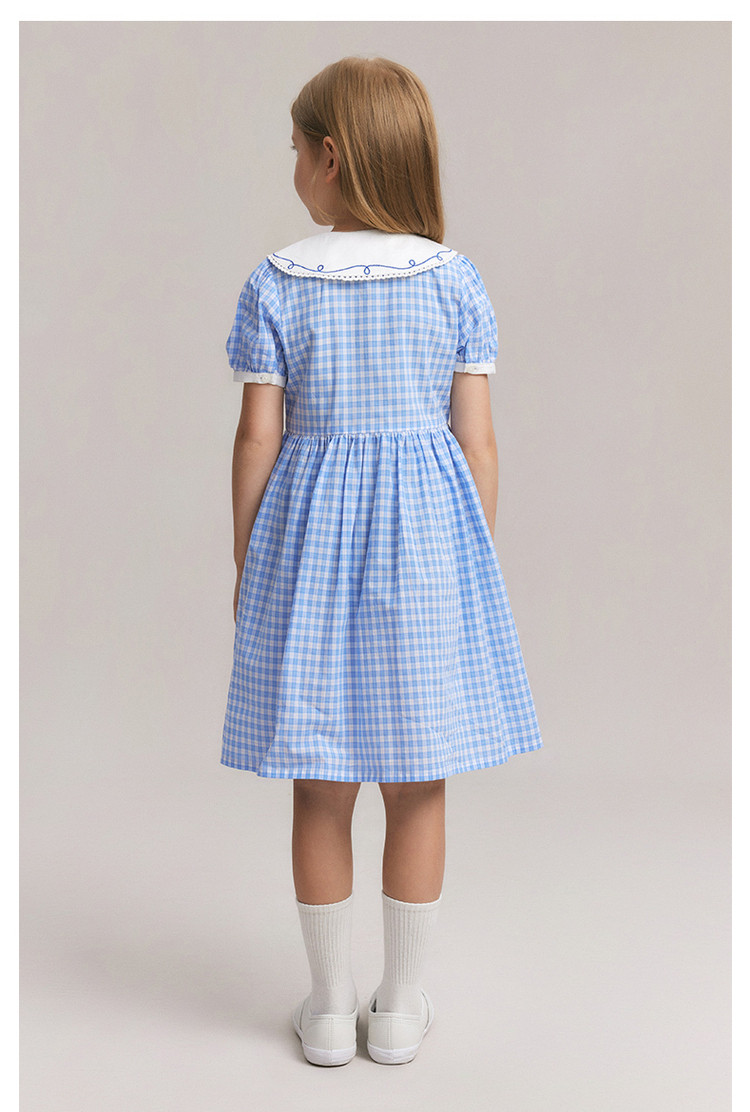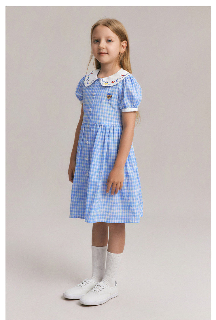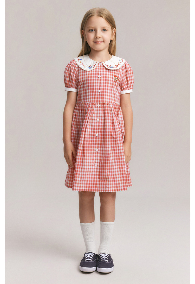 商品名称:小熊童装夏季女童清爽翻领格纹连衣裙 542721