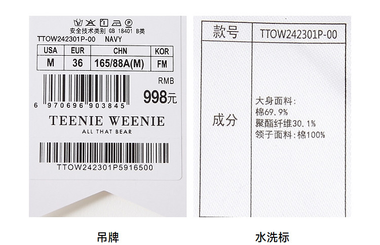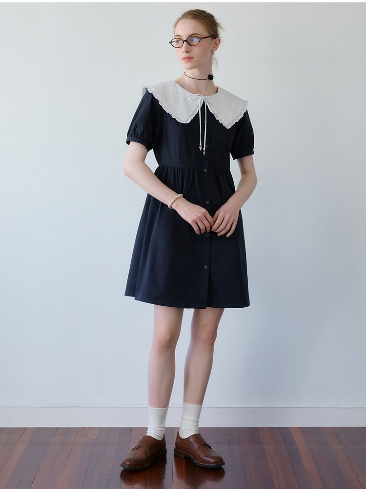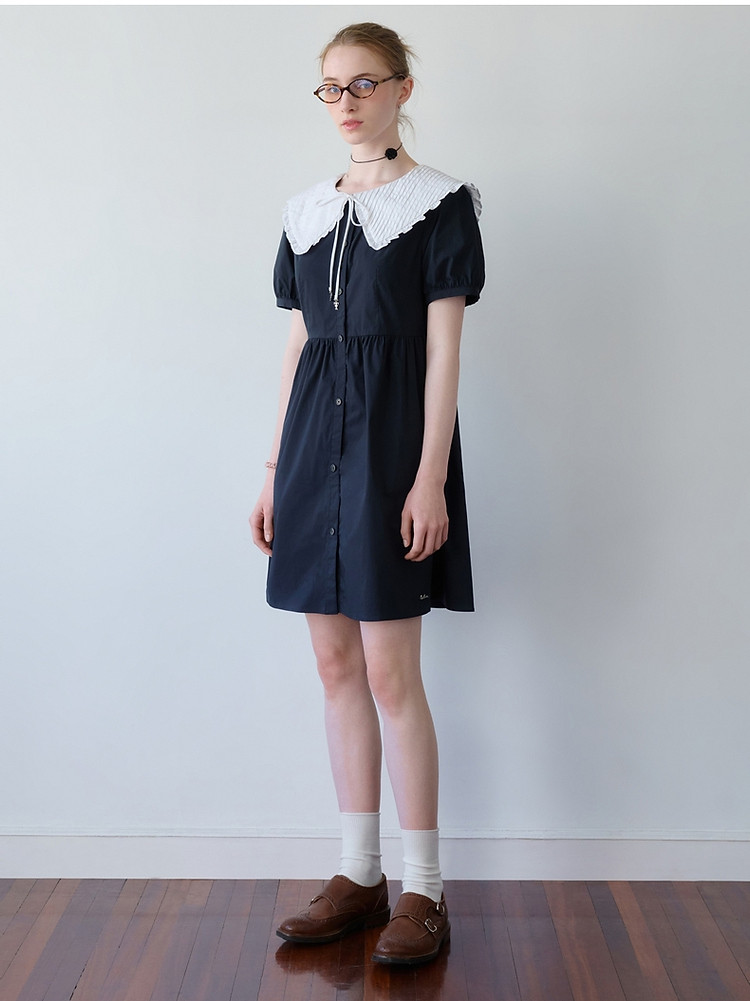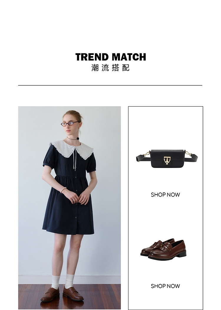 商品名称:连衣裙小熊女装甜美少女感娃娃领中长款连衣裙 958977