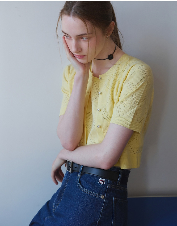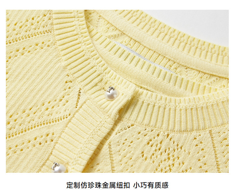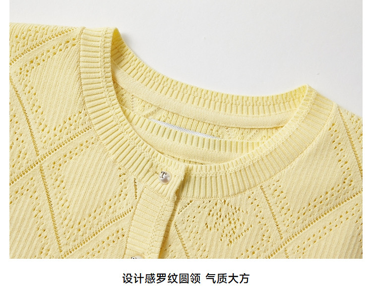 夏季新中式盘扣半袖针织衫女优雅气质休闲百搭时尚镂空透气上衣女 385473
