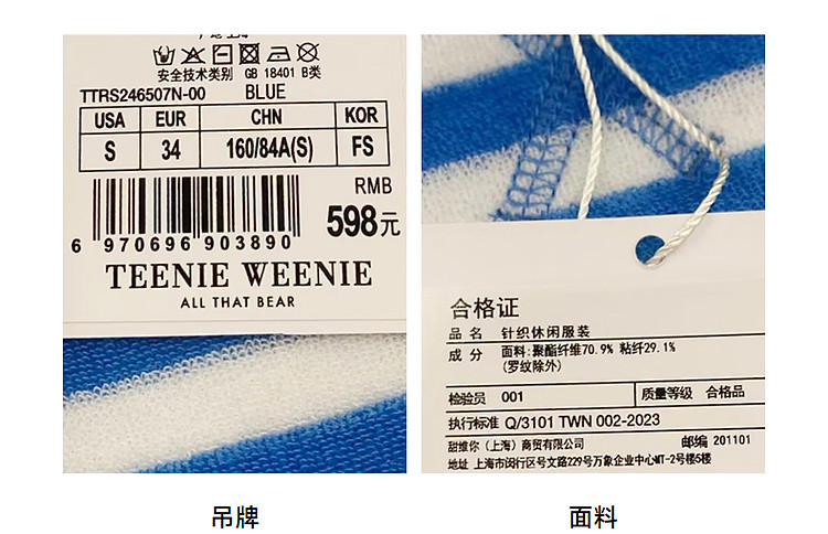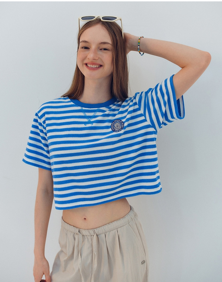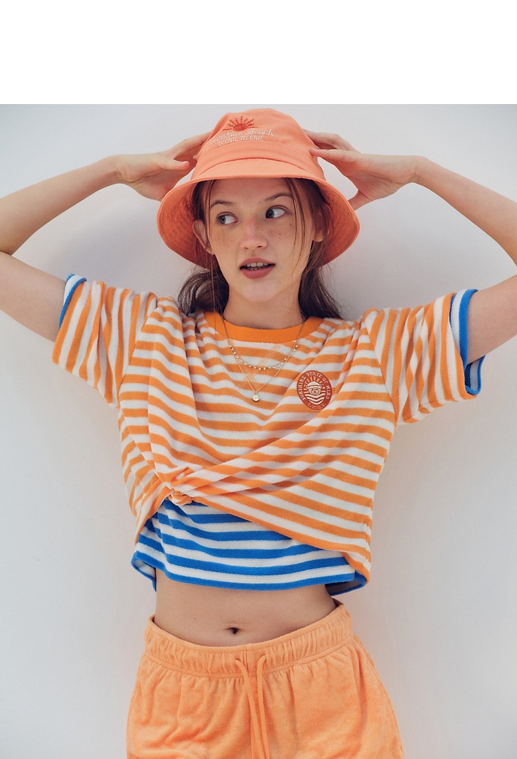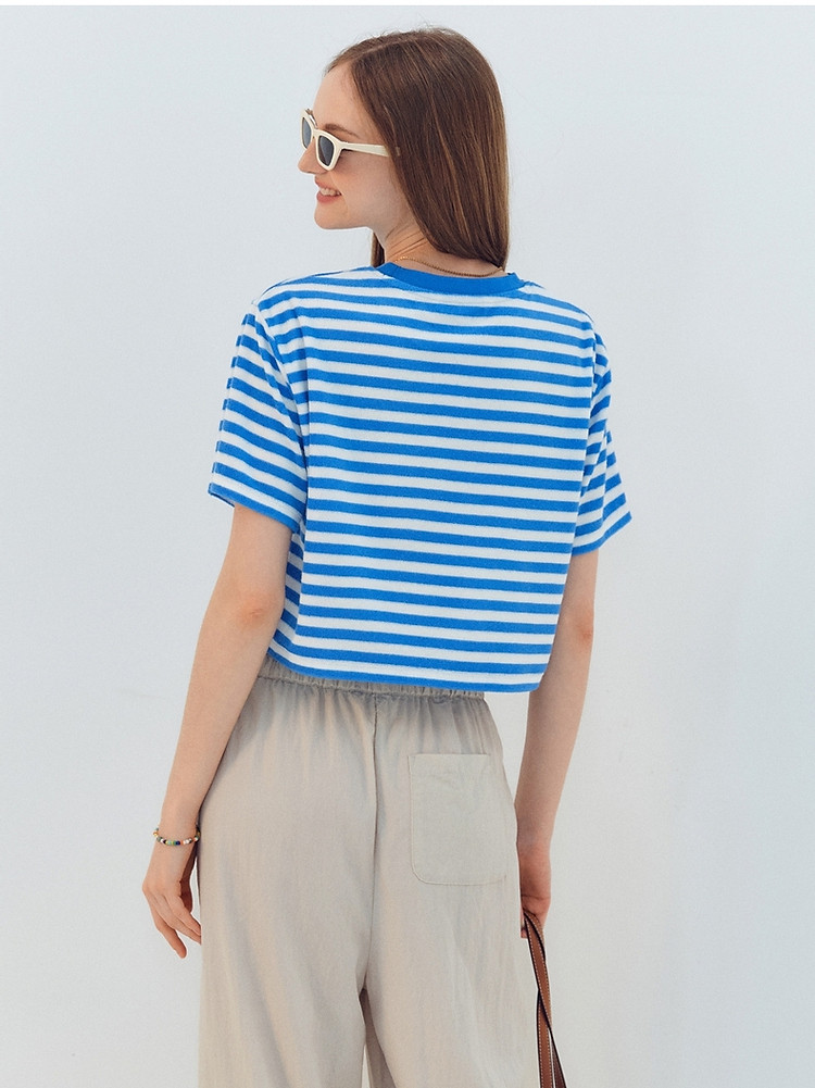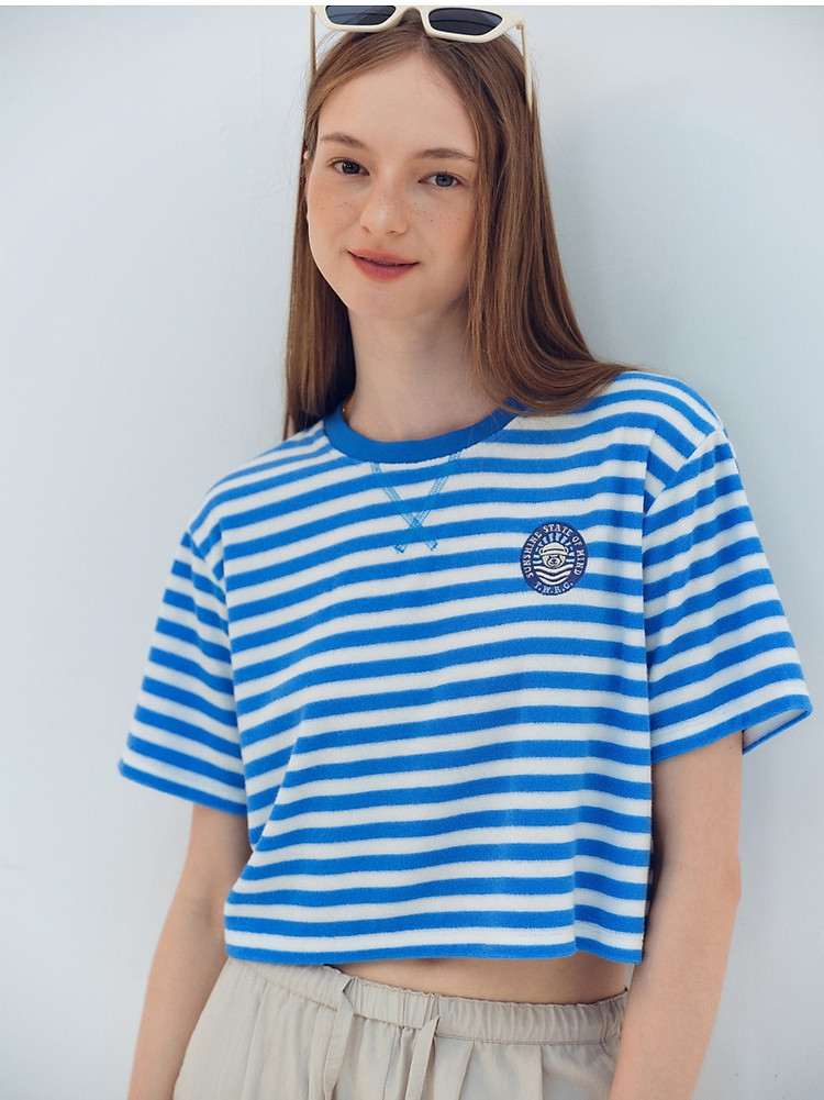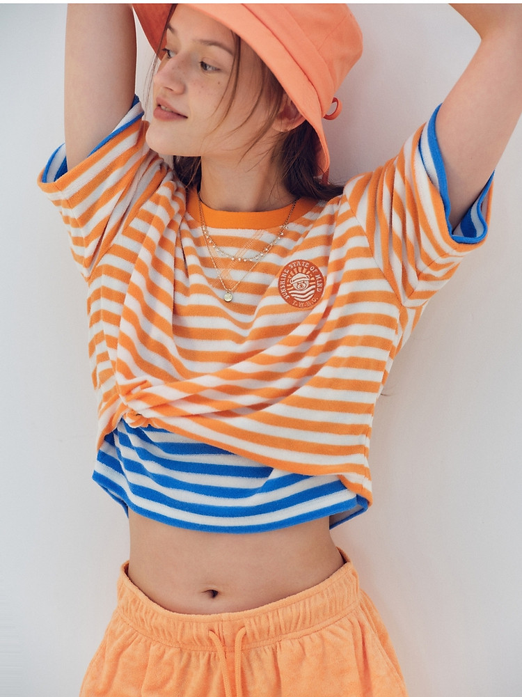 商品名称:小熊夏季款短款毛巾布条纹短袖T恤多巴胺女士 829569