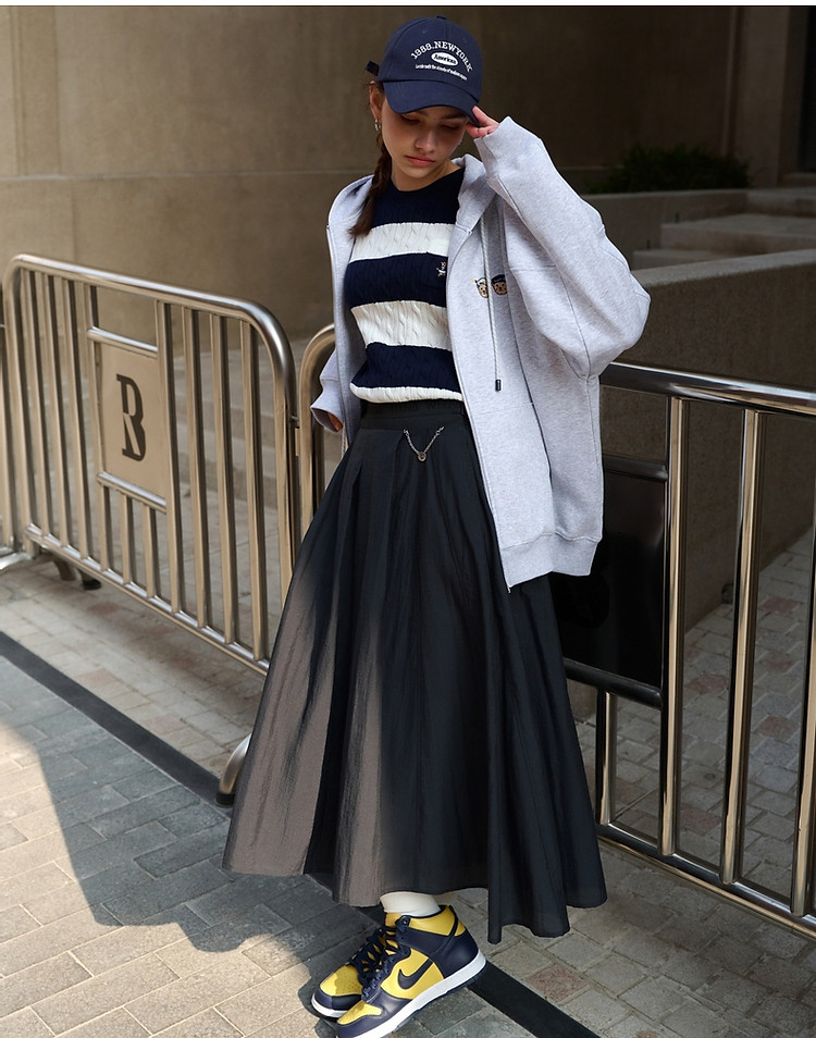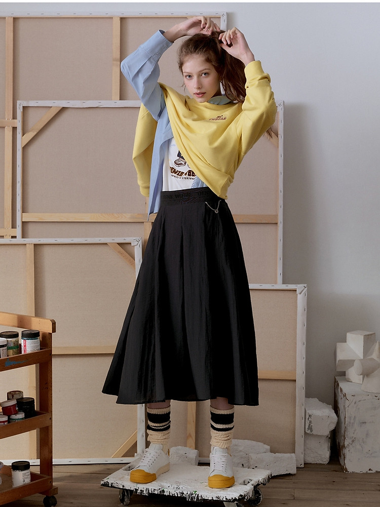 商品名称:小熊女装春夏款伞裙学院风中长款百褶裙半身裙 278977