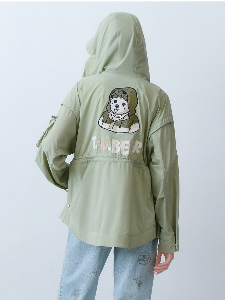 商品名称:【防泼水】外套女夏季户外工装风防风连帽外套夹克女 923713