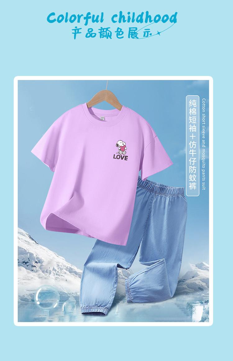 商品名称:女童套装25年夏季新款纯棉短袖t恤中大童仿牛仔长裤儿童运动装 160223