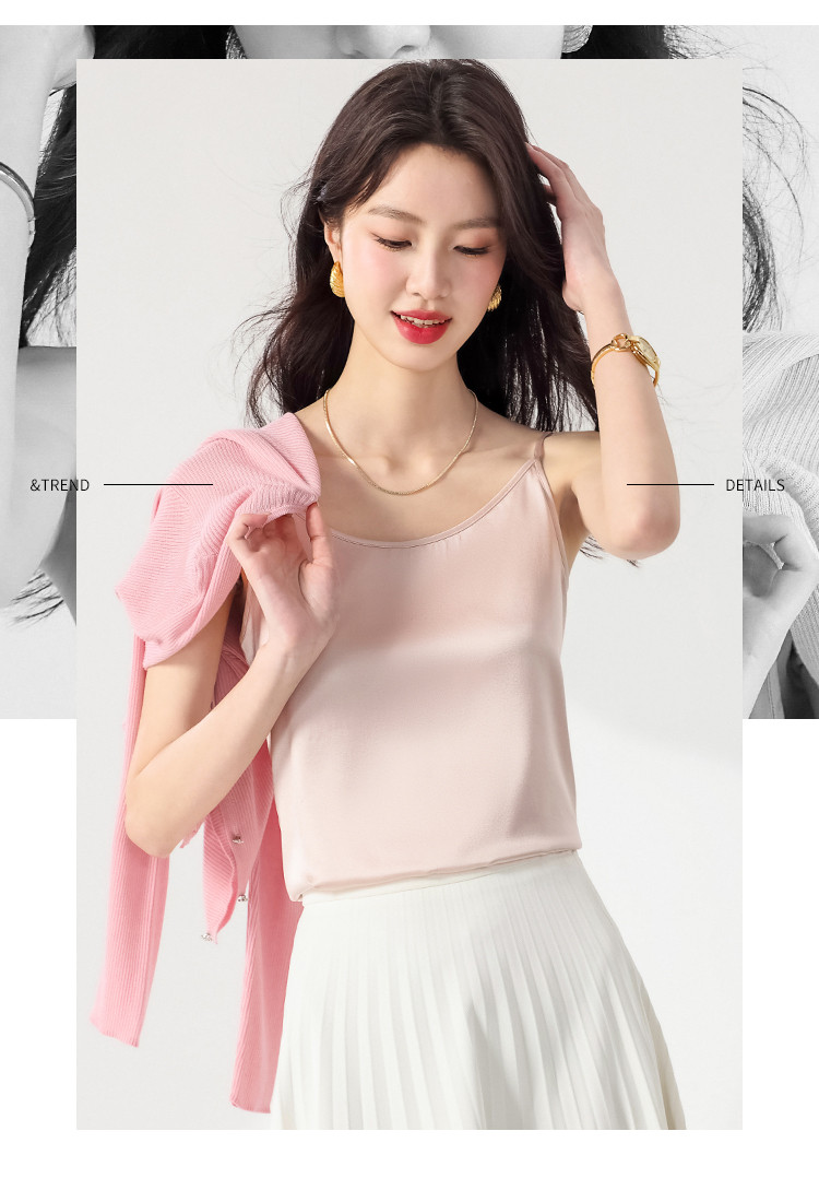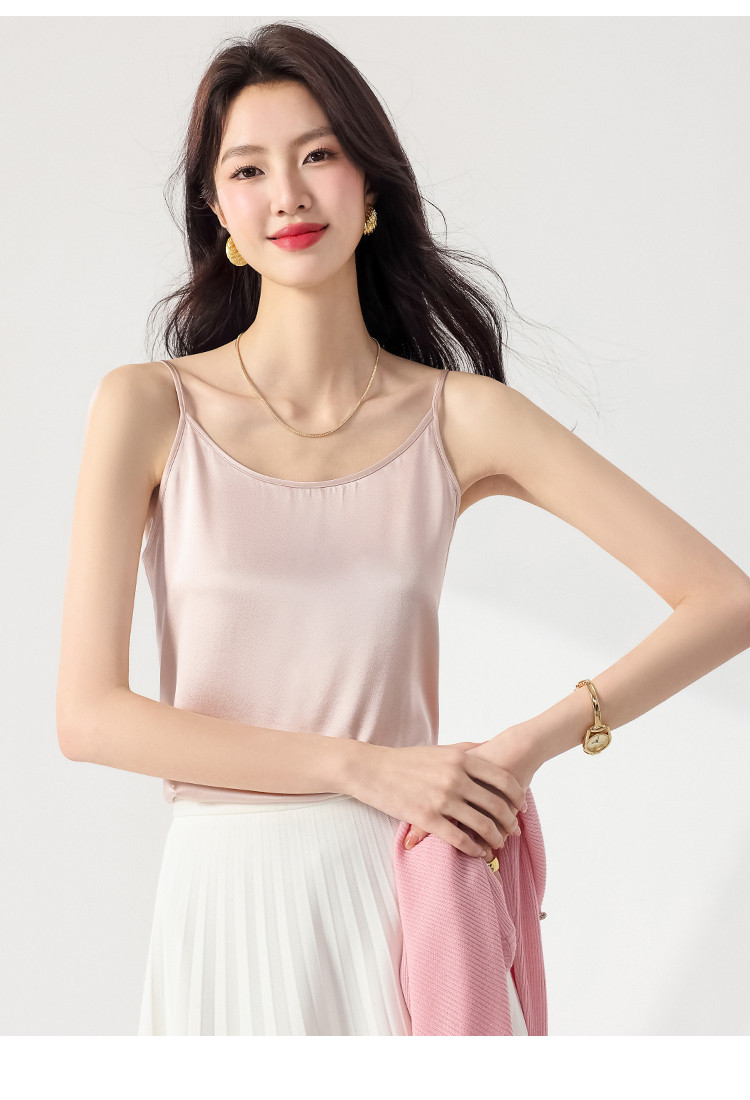 【16姆米】纯色圆领桑蚕丝背心吊带无袖衬衣内搭 235027
