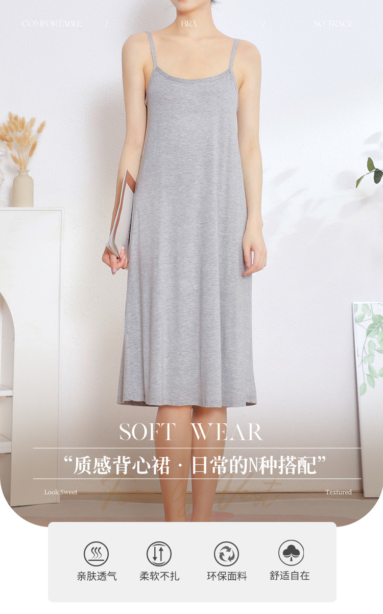 商品名称:【修身显瘦】内衣夏季薄款打底衫女上衣可外穿背心女士中长吊带裙 671563