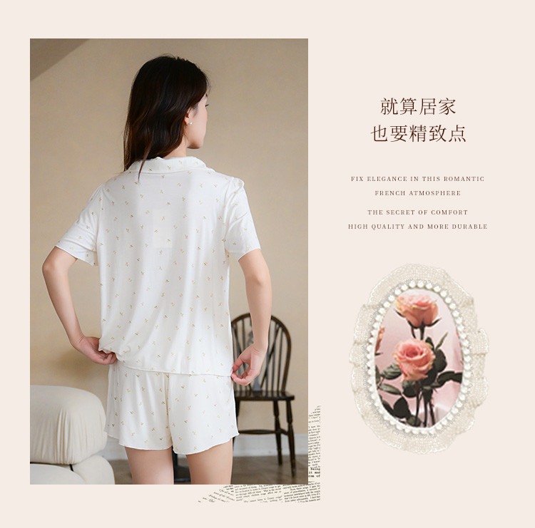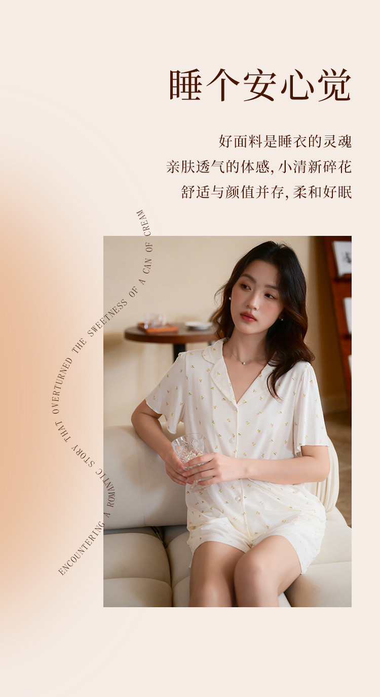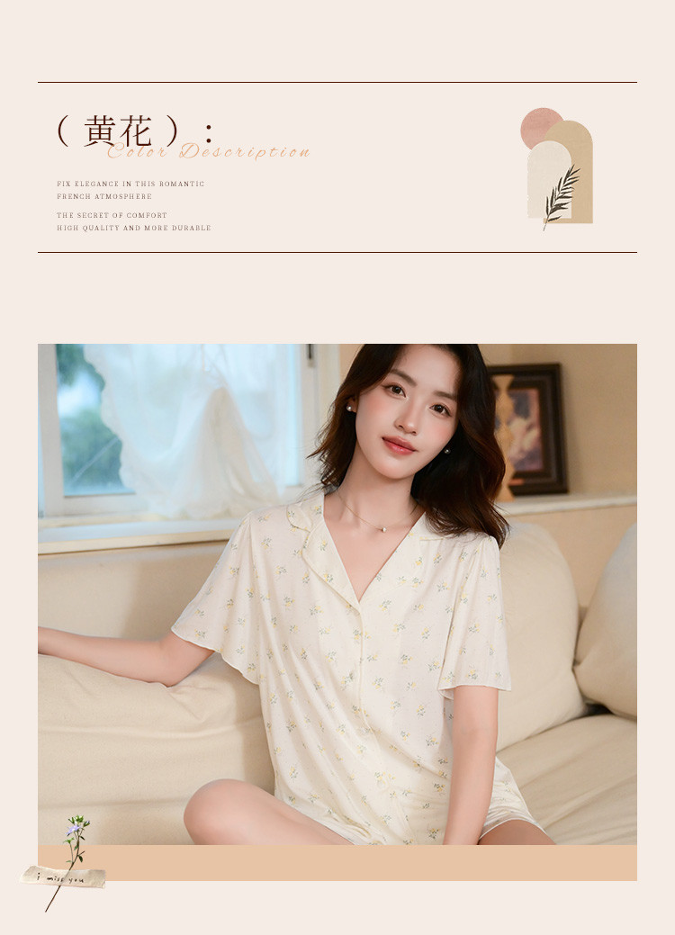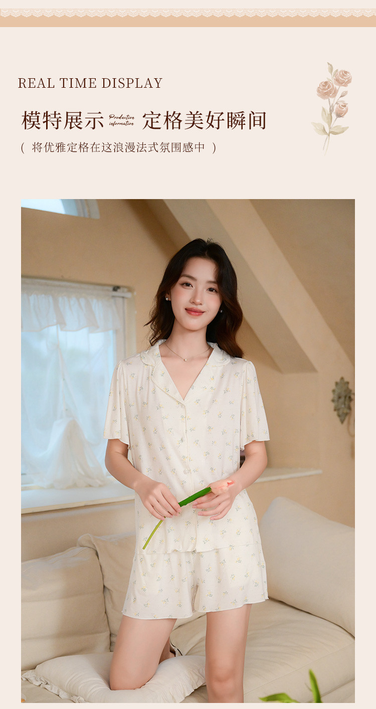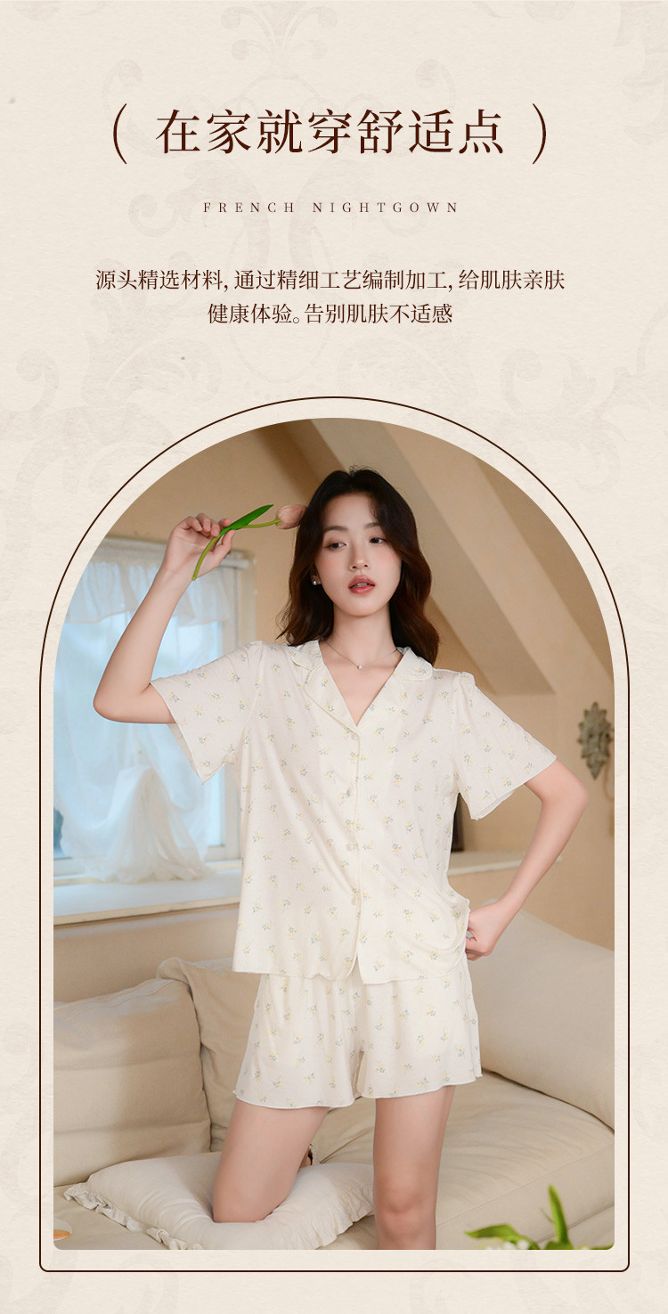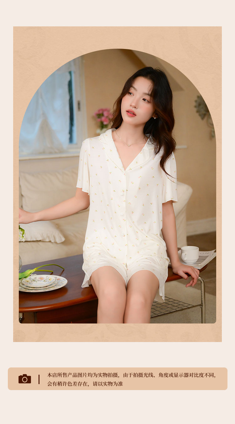 商品名称:【碎花小清新】甜美短袖短裤女士睡衣夏款开衫家居服套装可外穿 117899