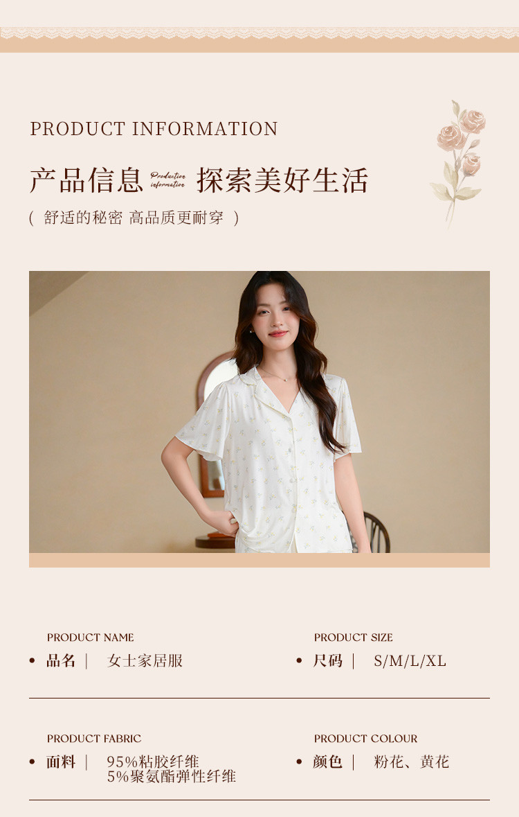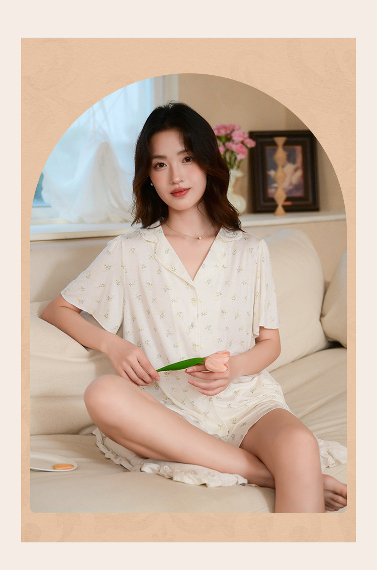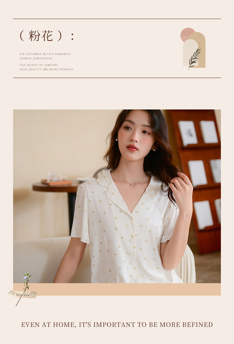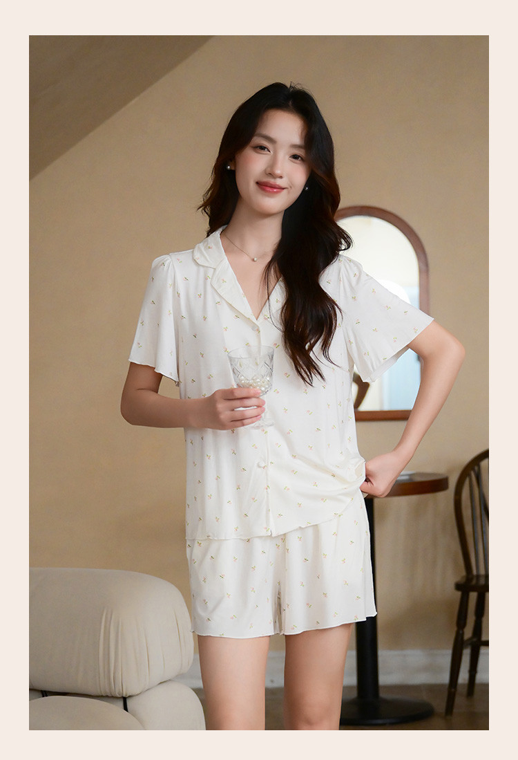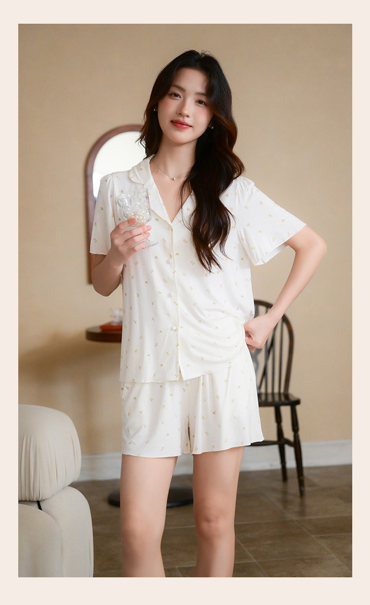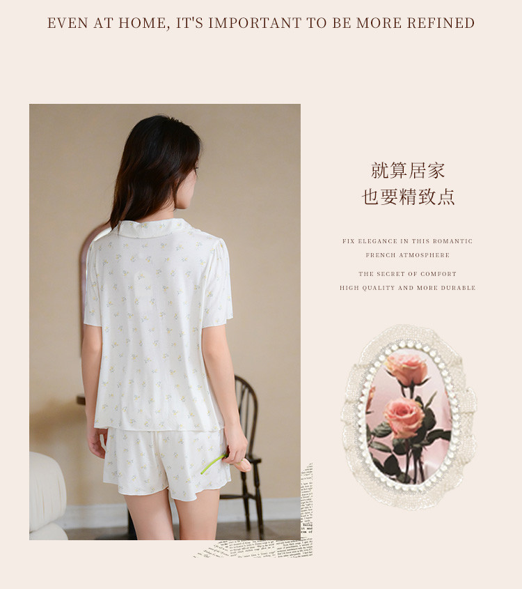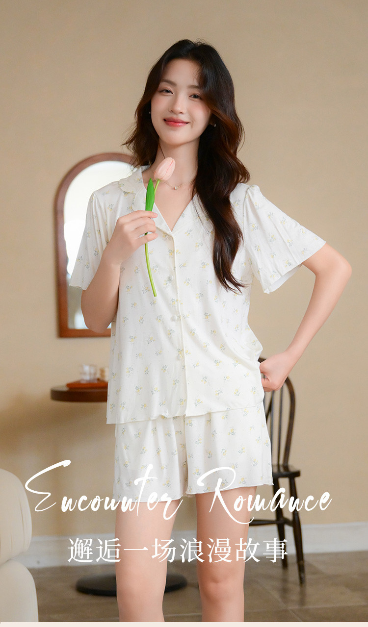 商品名称:【碎花小清新】甜美短袖短裤女士睡衣夏款开衫家居服套装可外穿 117899