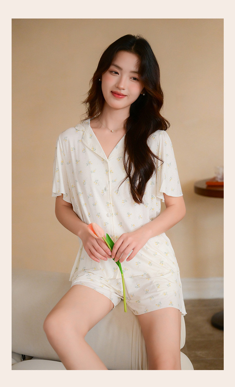 【碎花小清新】甜美短袖短裤女士睡衣夏款开衫家居服套装可外穿 117899