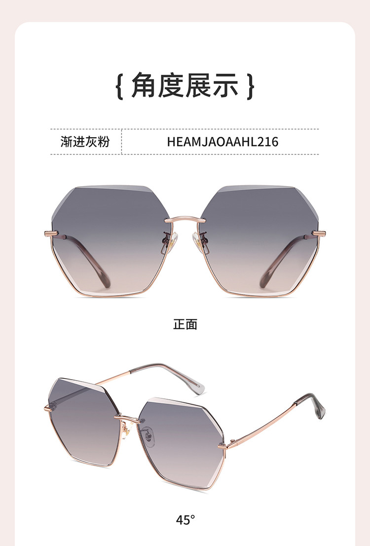 商品名称:2025新款无框切边太阳眼镜潮流气质驾驶开车旅游高级感墨镜 233988