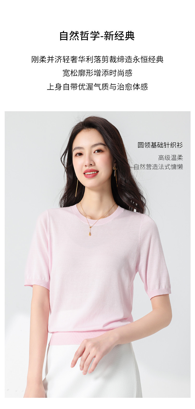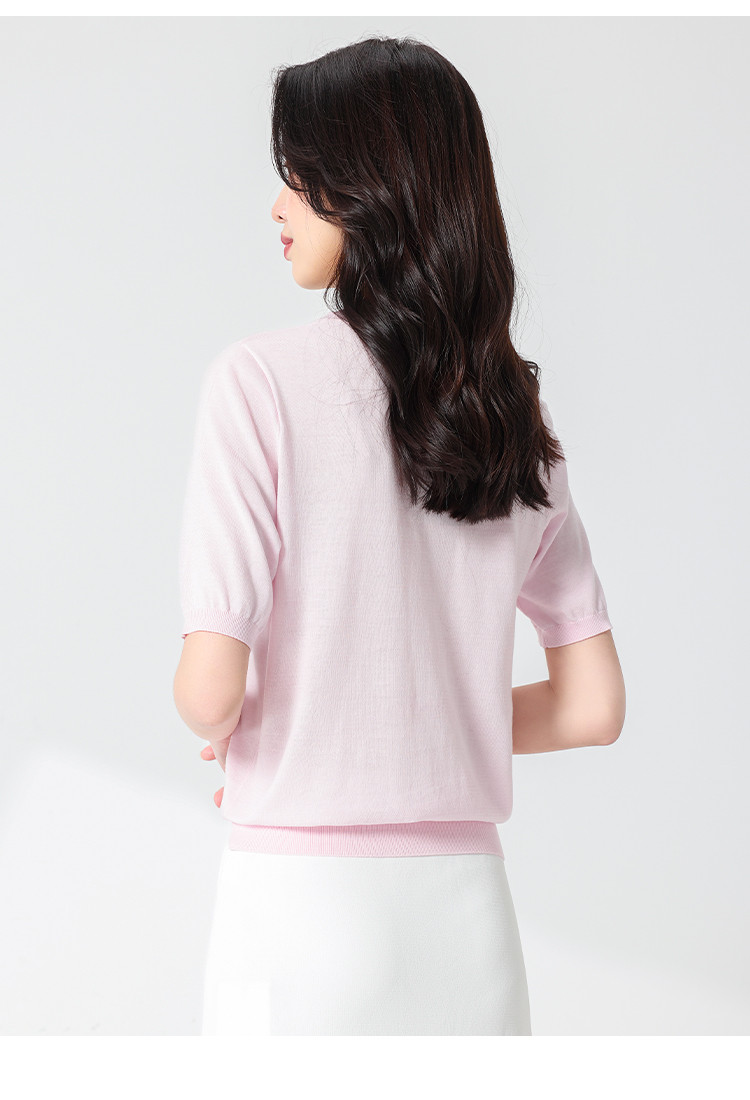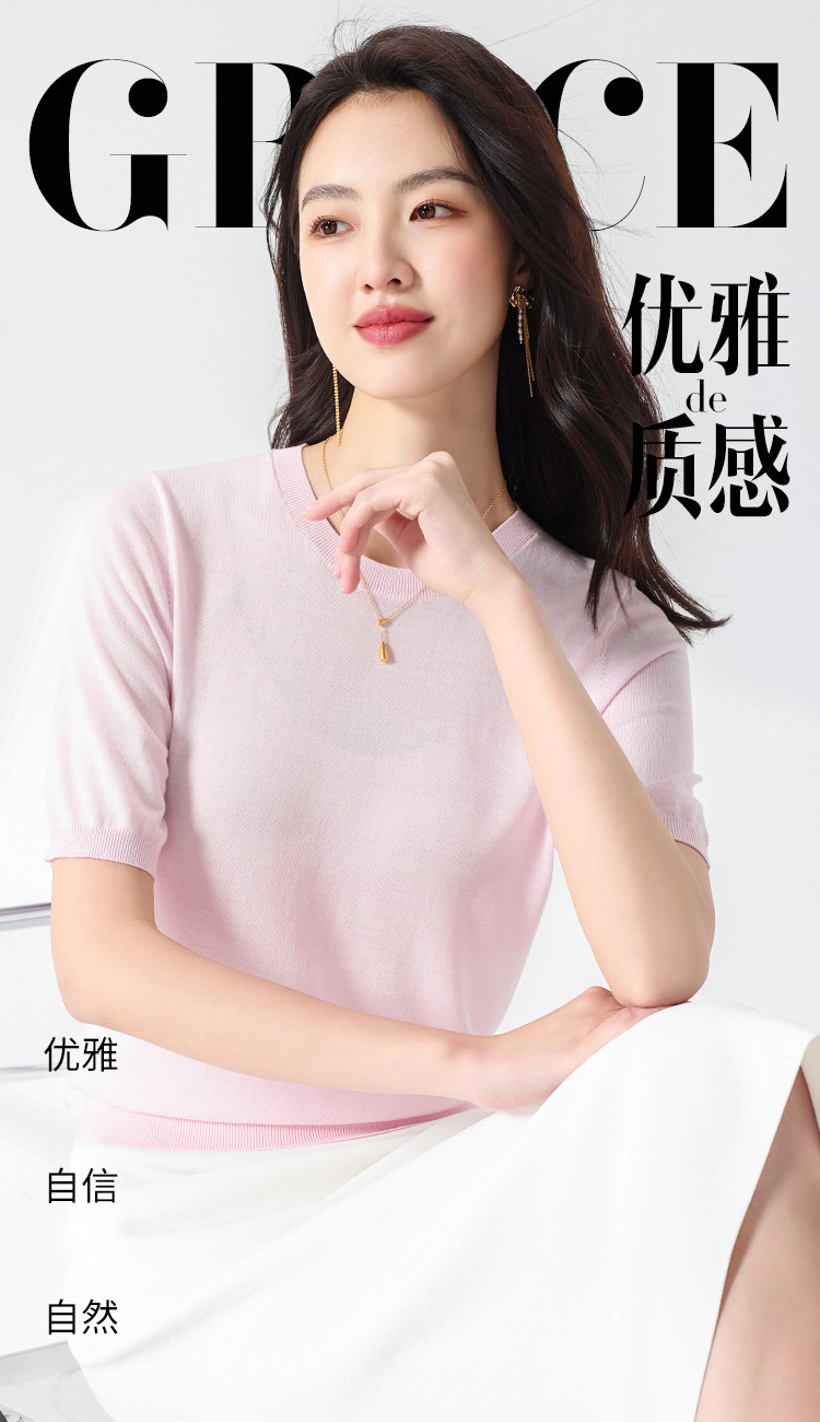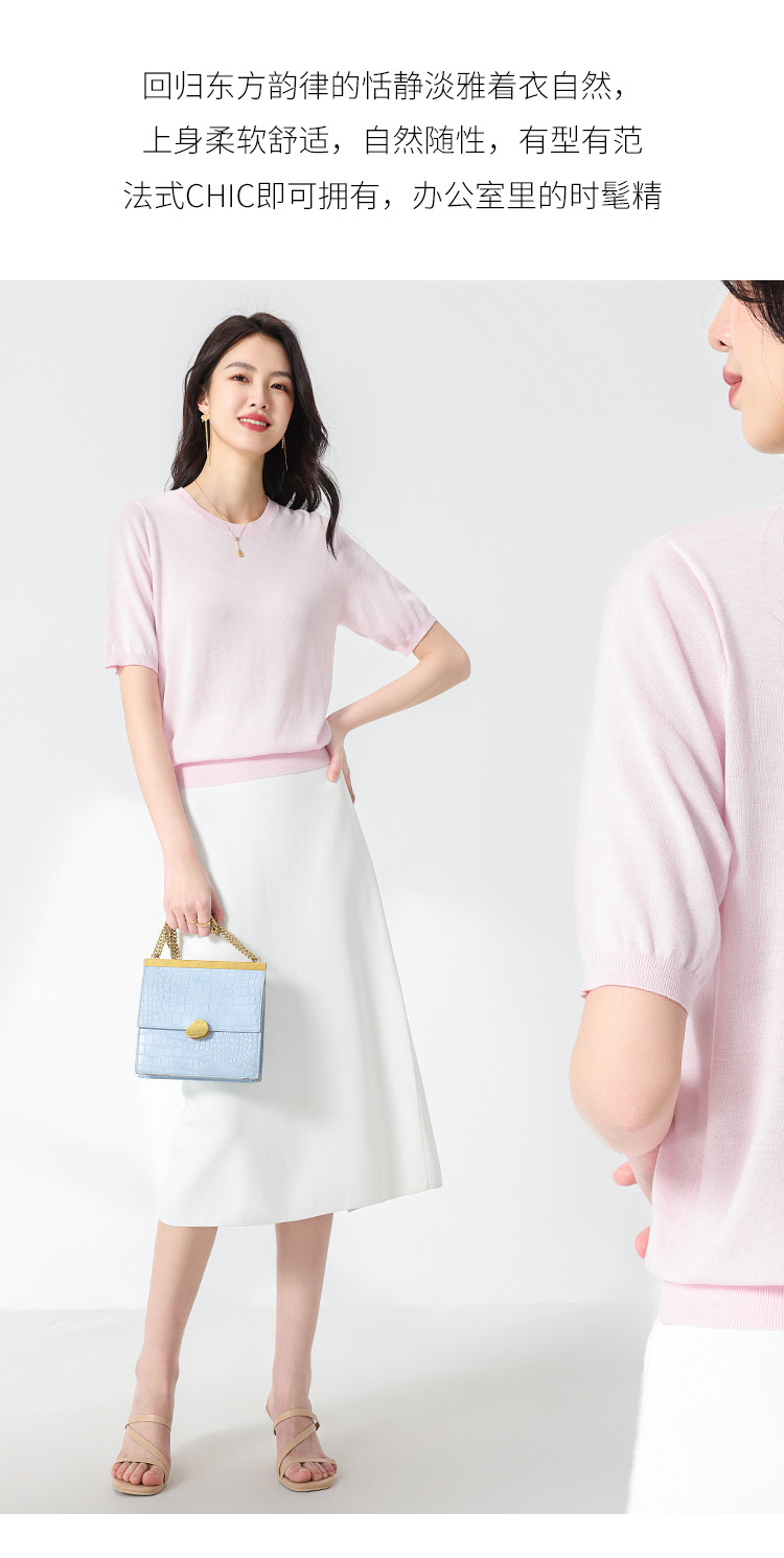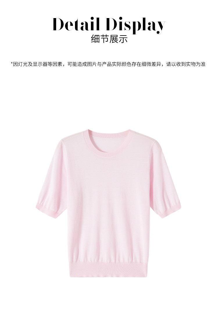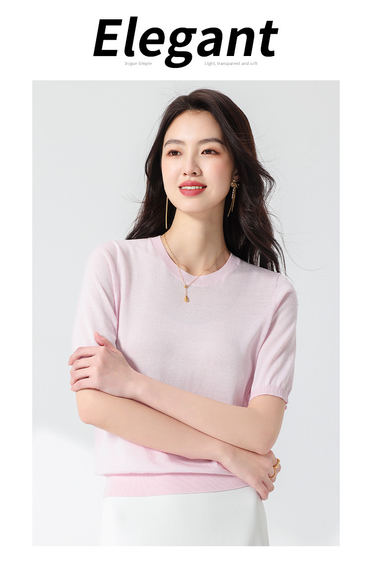 商品名称:【含桑蚕丝】轻薄透气基础百搭纯色圆领针织打底衫短袖T恤女夏 158099