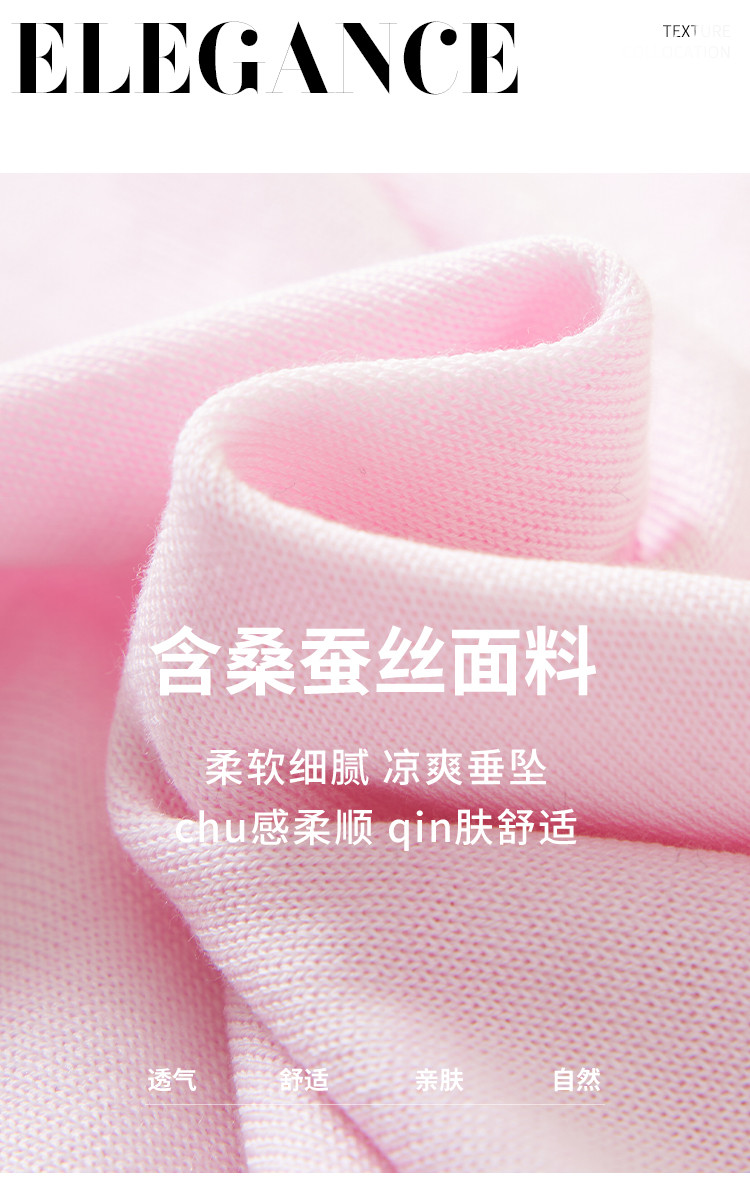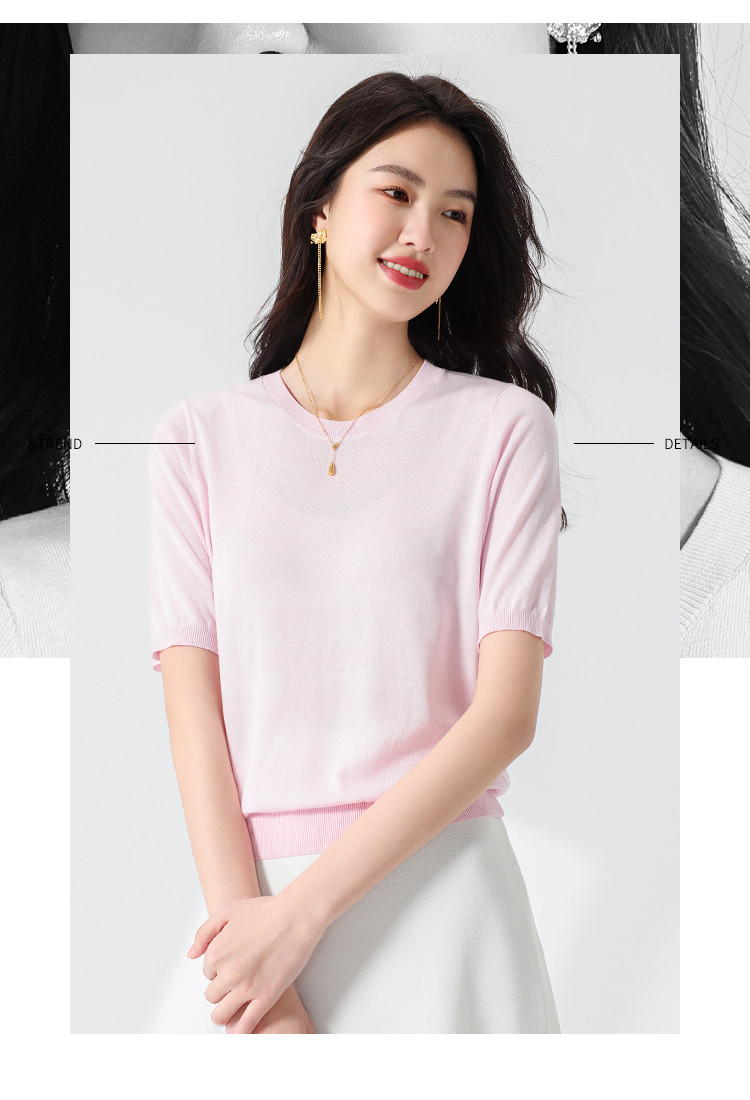 【含桑蚕丝】轻薄透气基础百搭纯色圆领针织打底衫短袖T恤女夏 158099