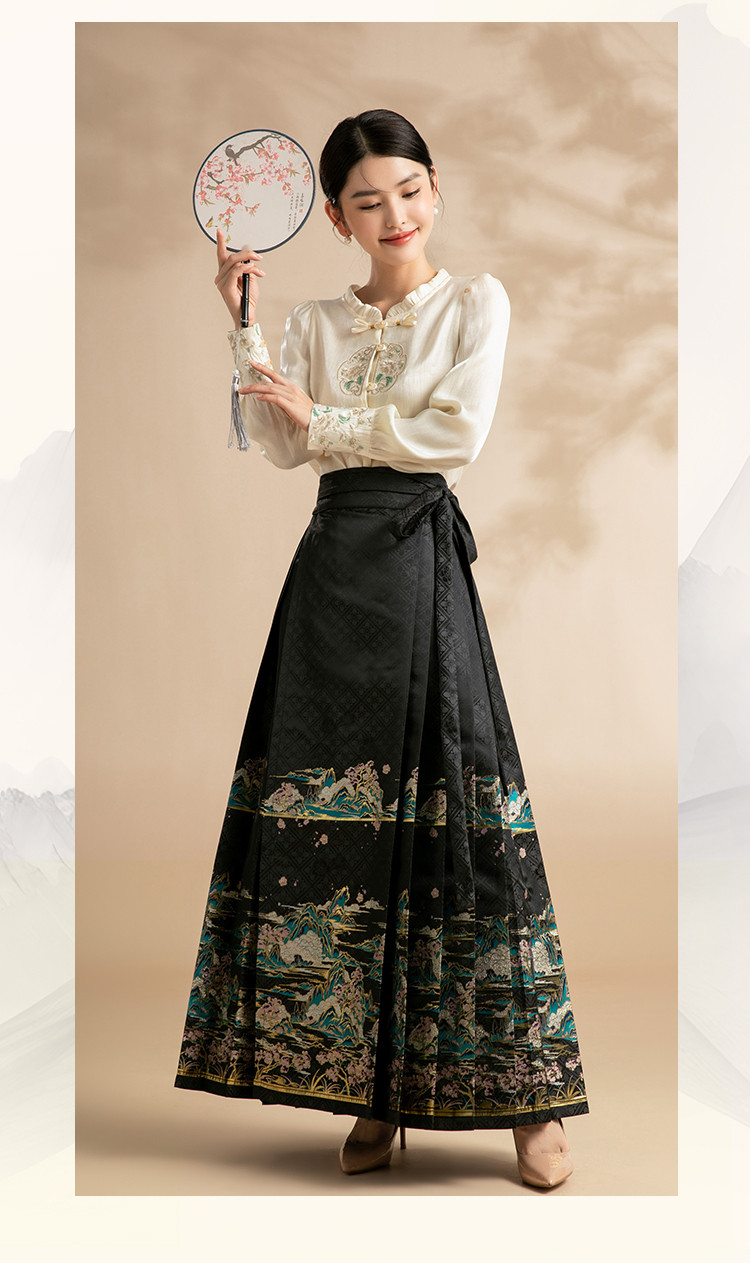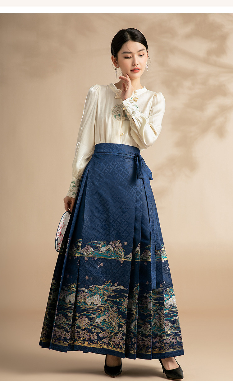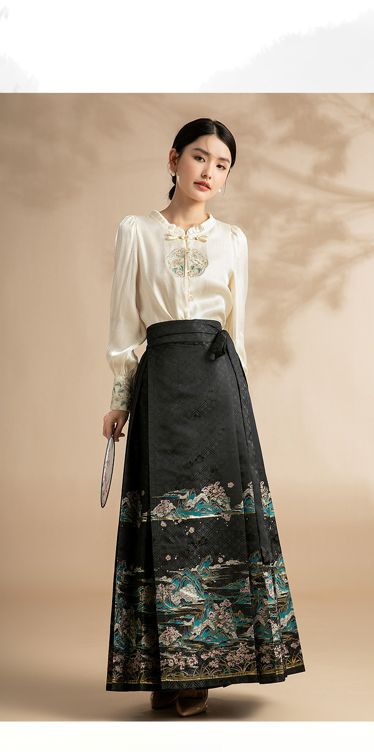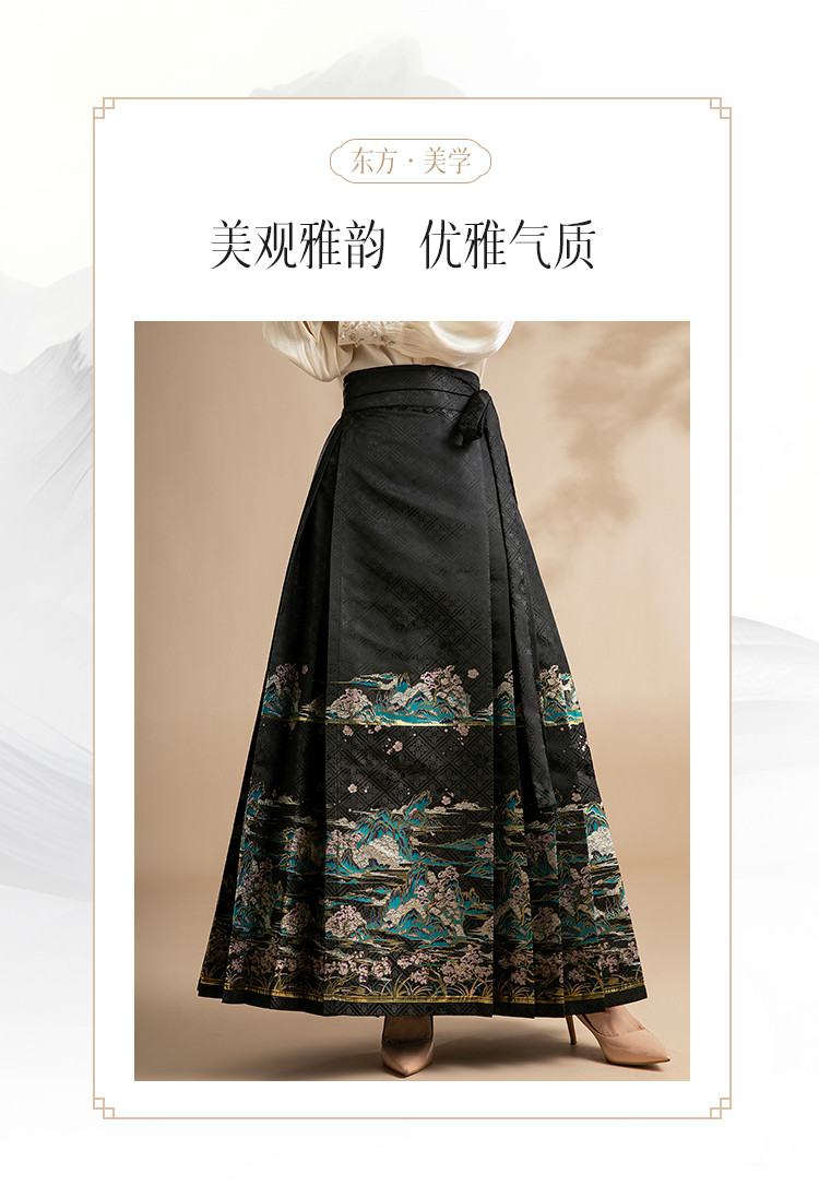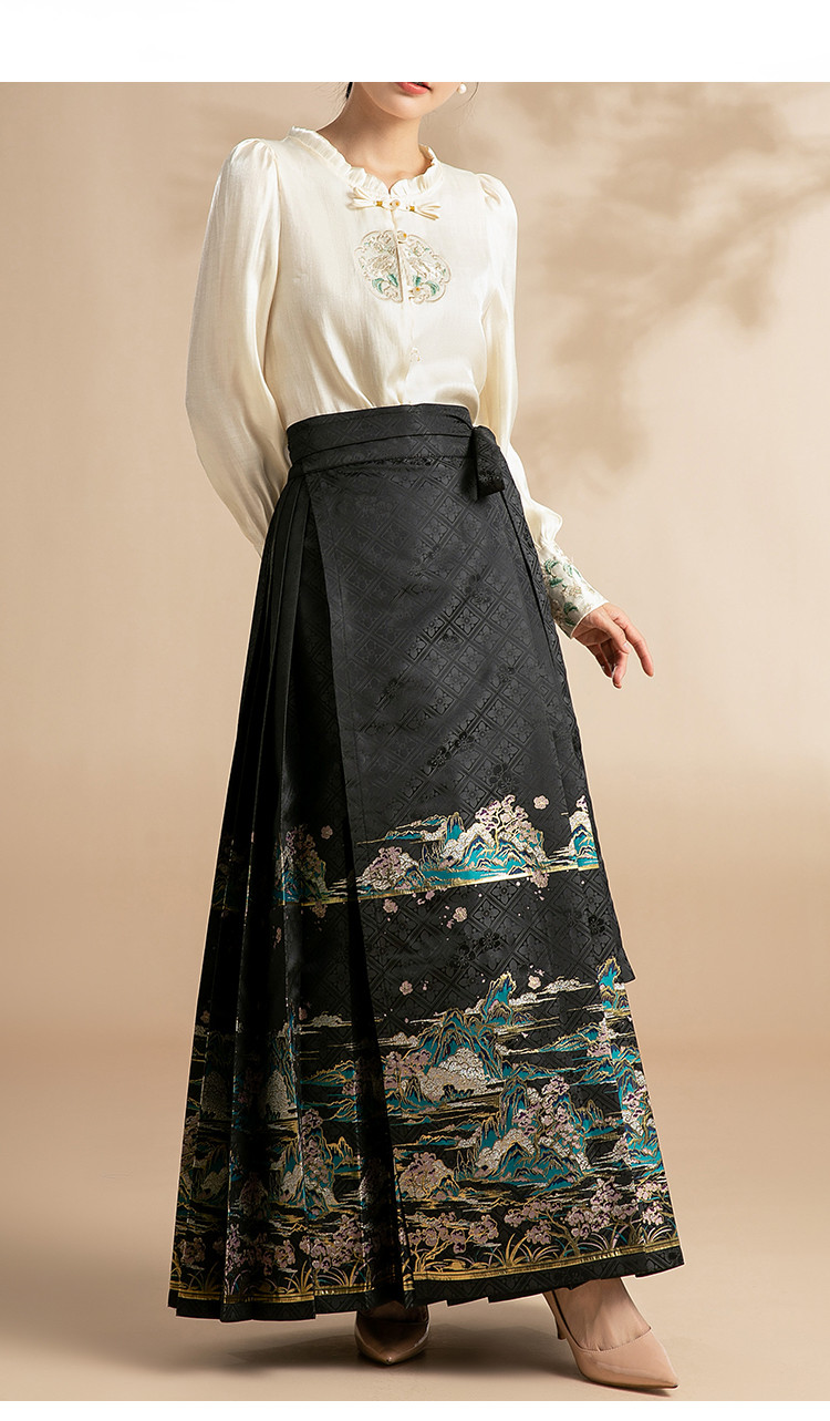 商品名称:新中式马面裙春秋绣花高级感国风江山桃花马面裙 795039