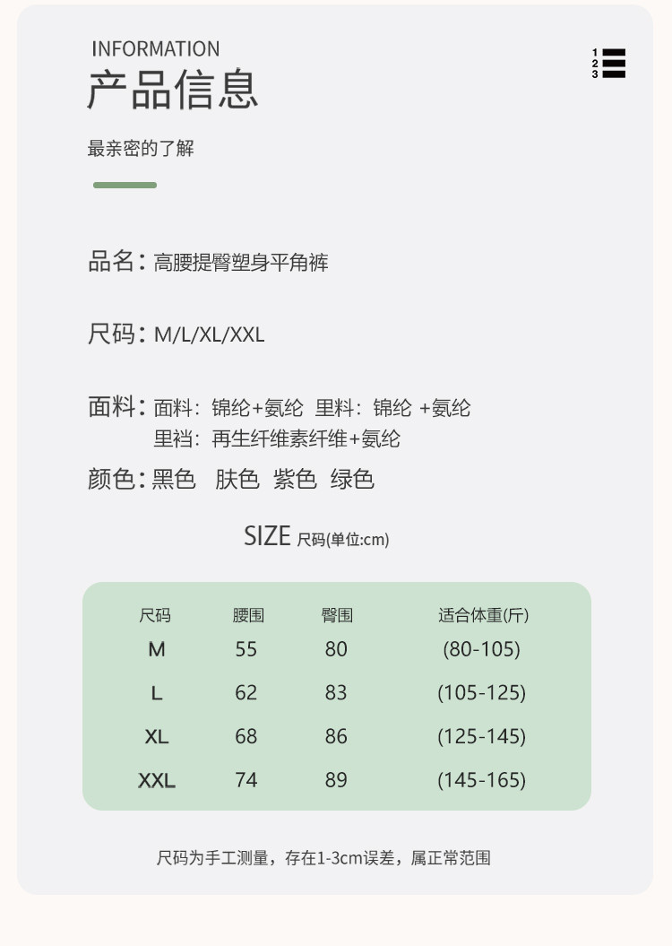 商品名称:【塑身安全内裤三合一】高腰提臀收腹安全打底裤塑身平角裤 898974