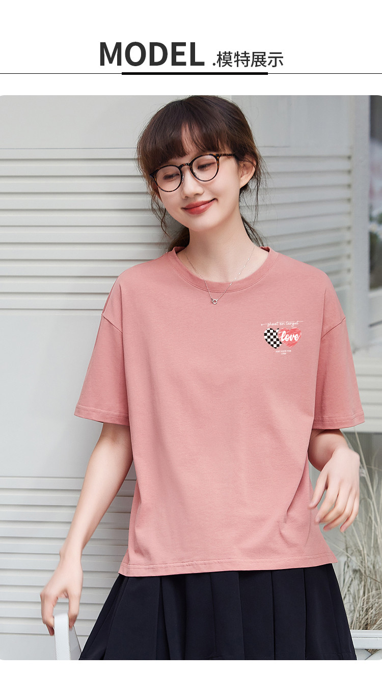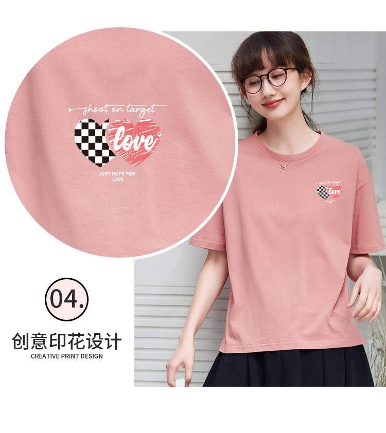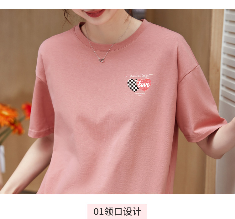 米子旗夏季圆领印花女式大码T恤宽松版显瘦简约休闲短袖上衣 661082