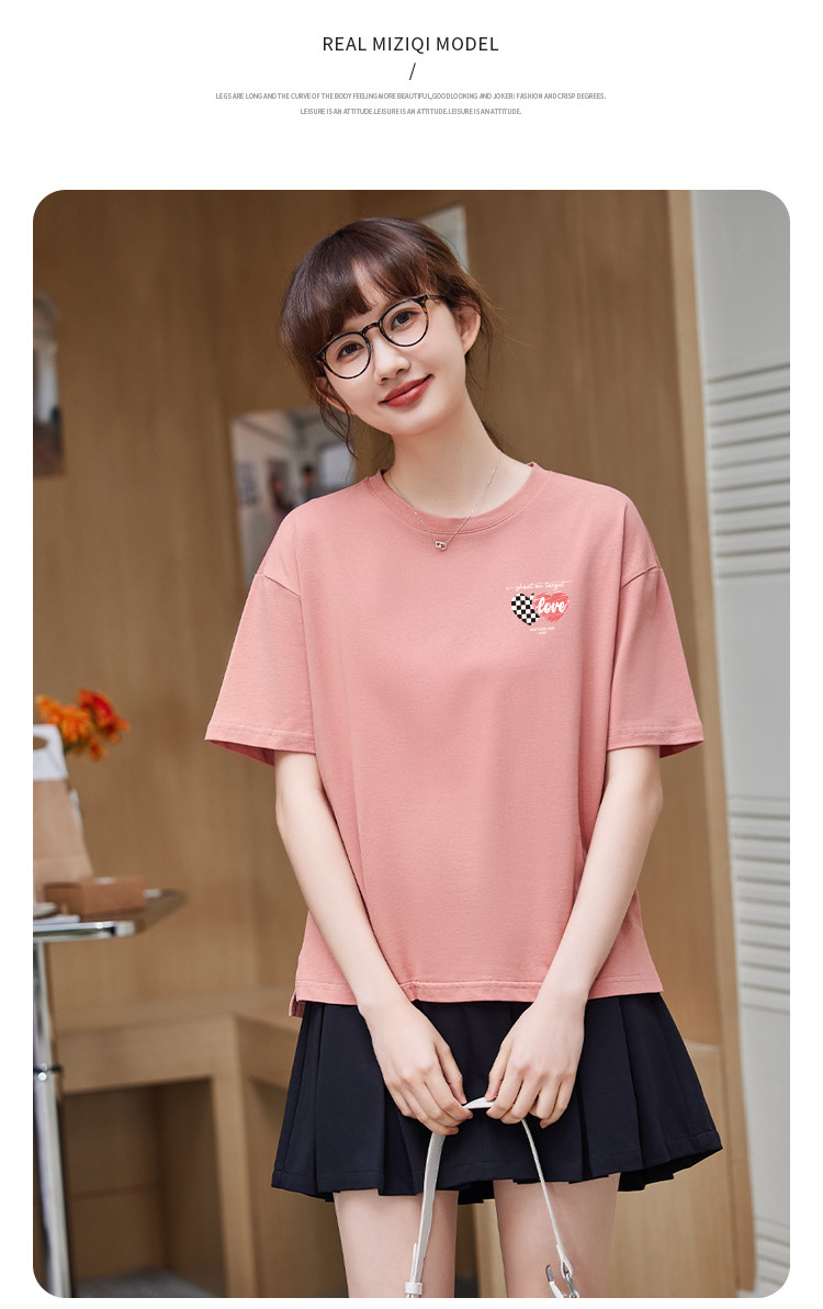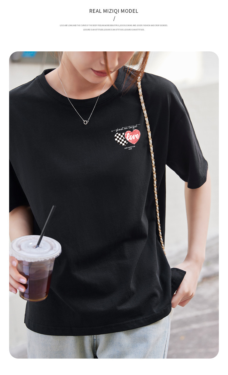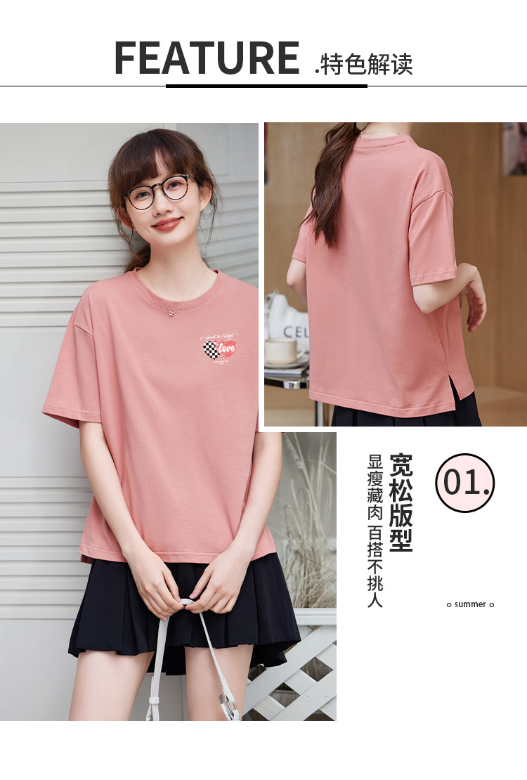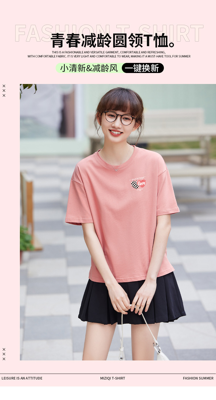 商品名称:米子旗夏季圆领印花女式大码T恤宽松版显瘦简约休闲短袖上衣 661082
