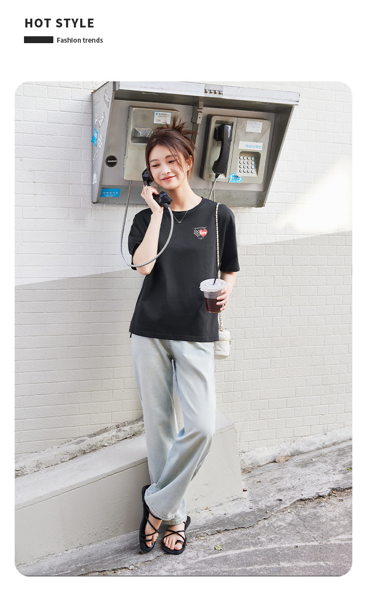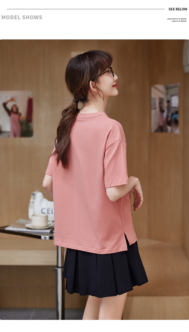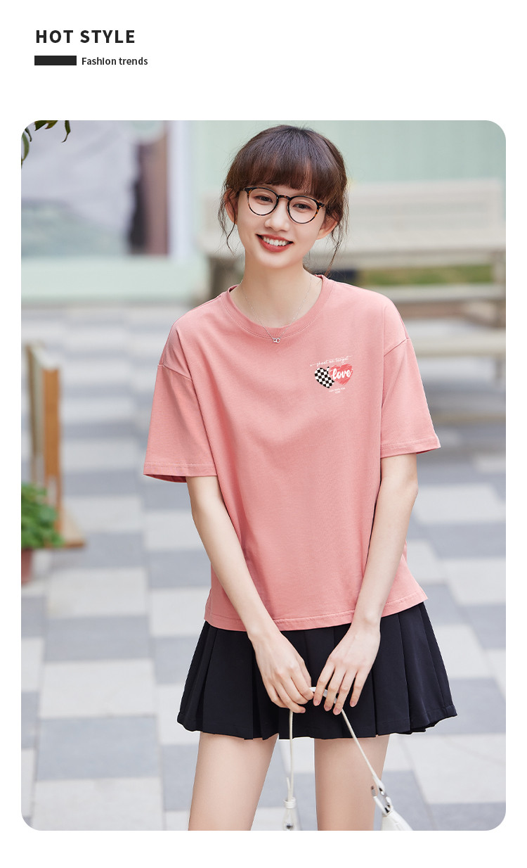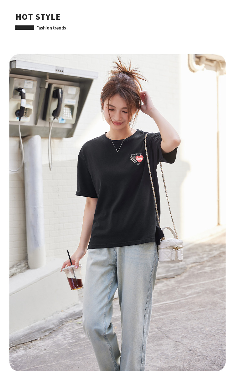 商品名称:米子旗夏季圆领印花女式大码T恤宽松版显瘦简约休闲短袖上衣 661082