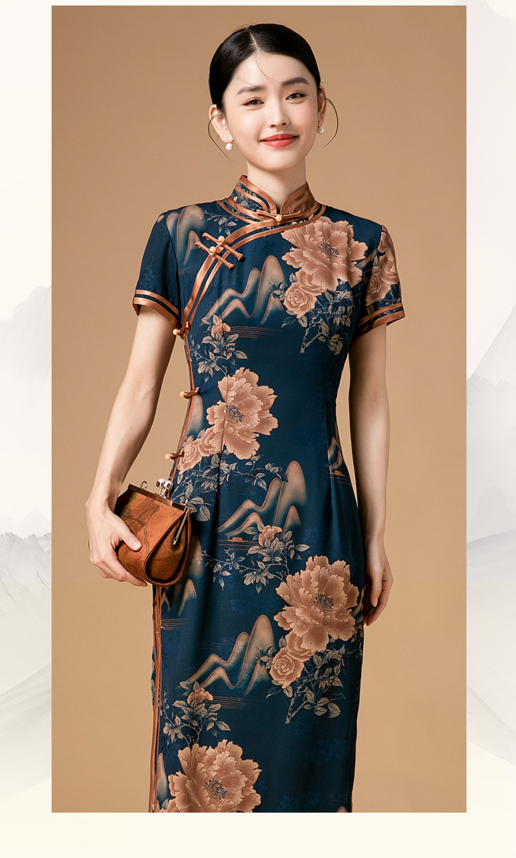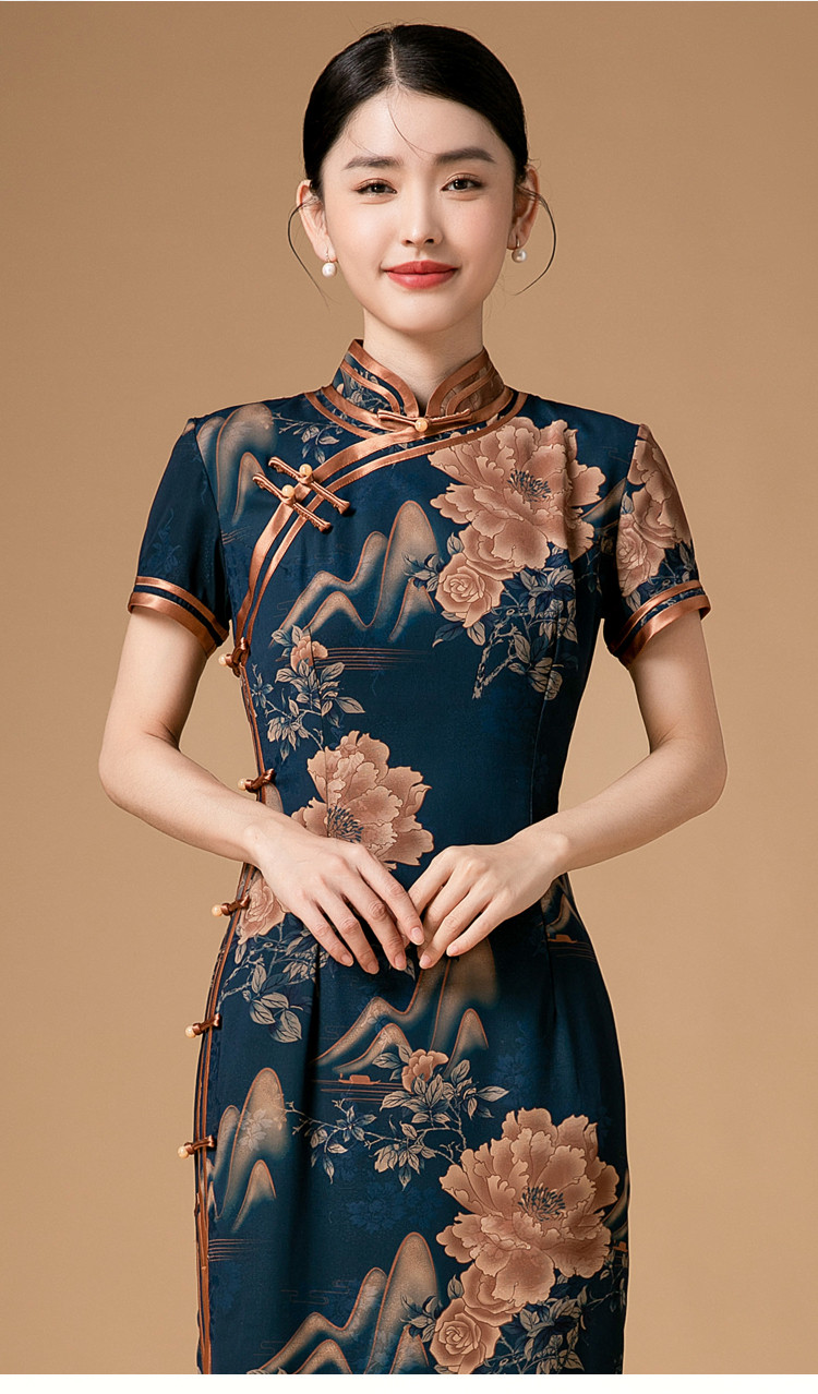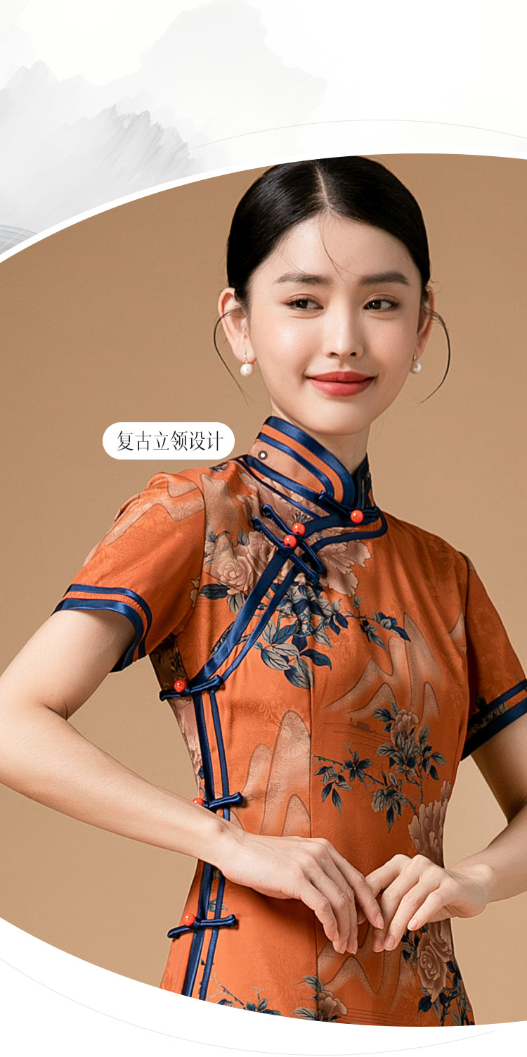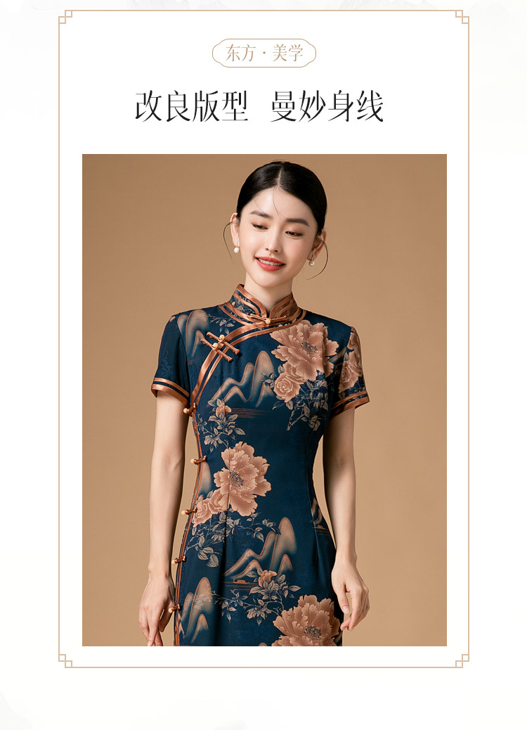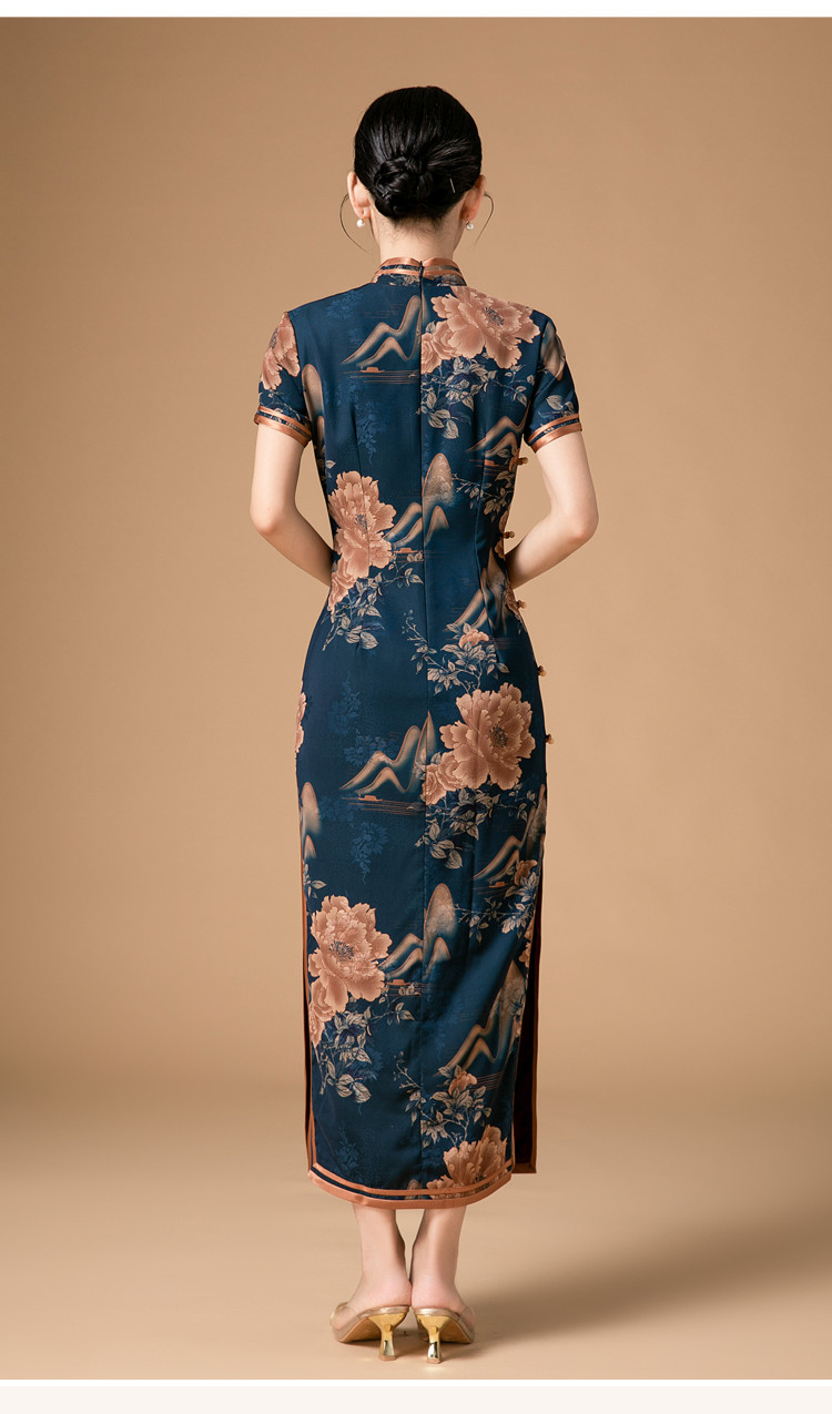 时尚旗袍改良款斜襟立领中长复古旗袍连衣裙 985951