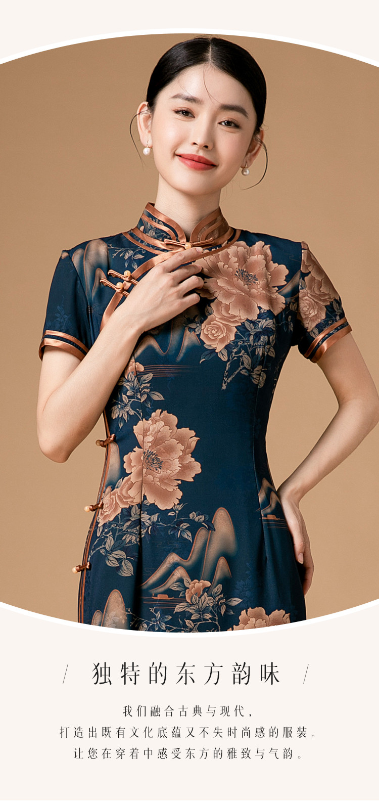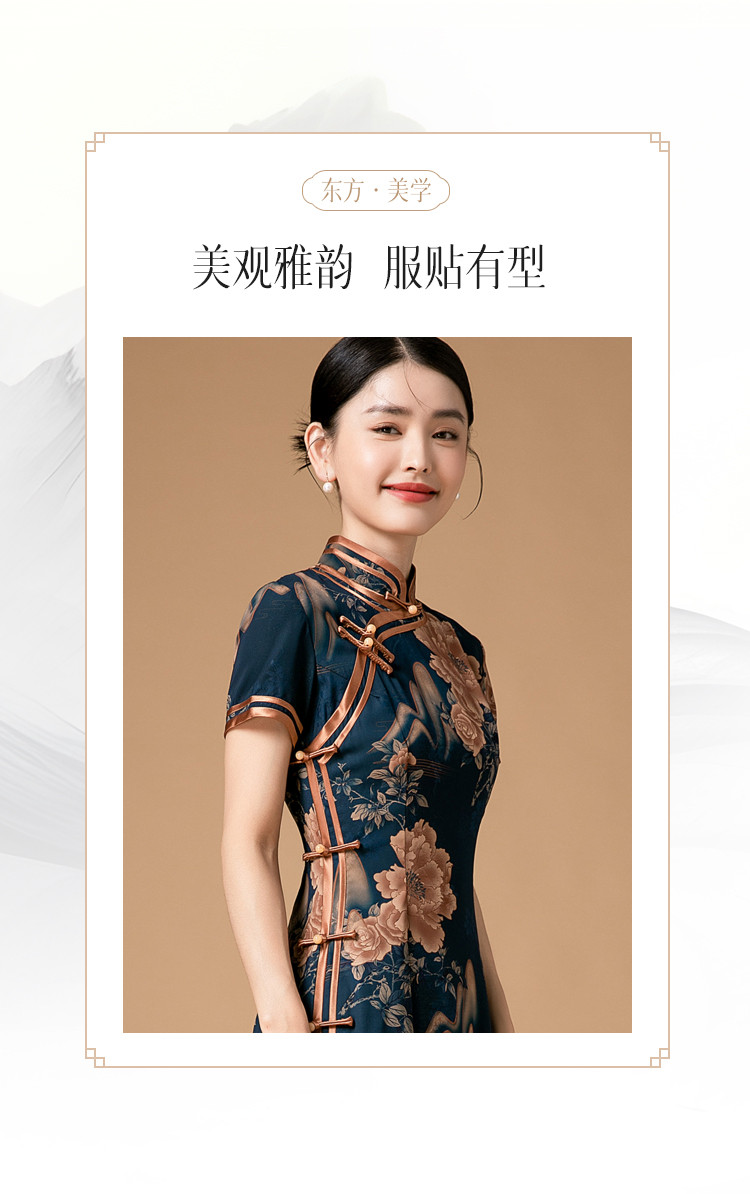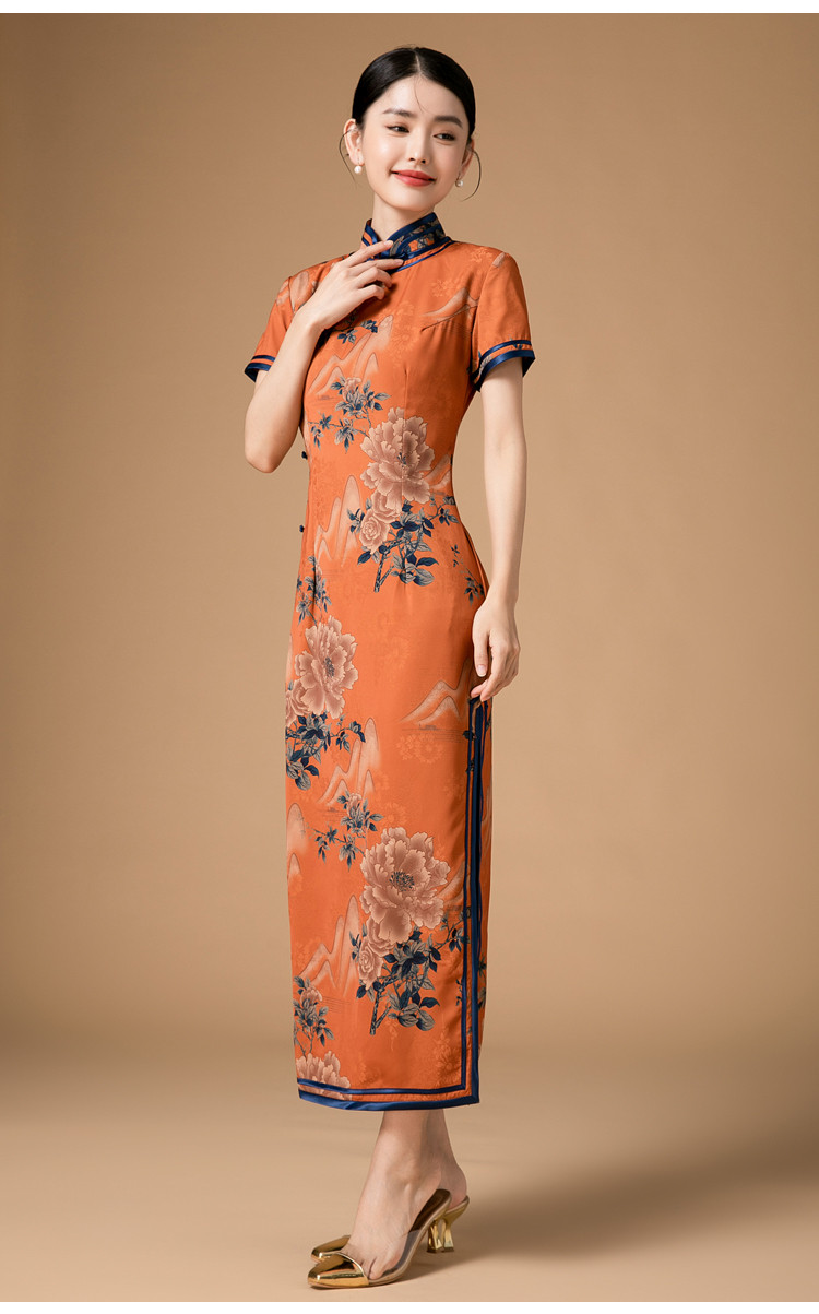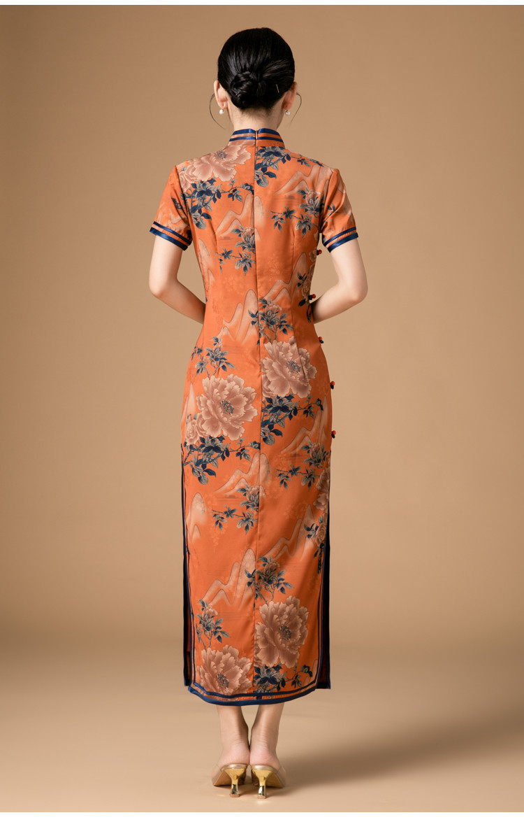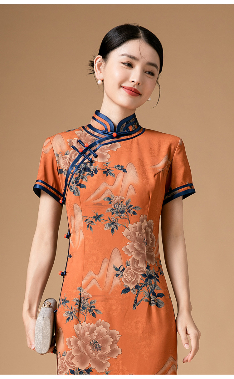 时尚旗袍改良款斜襟立领中长复古旗袍连衣裙 985951