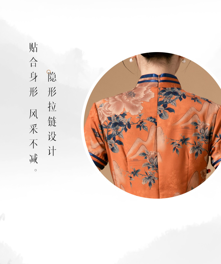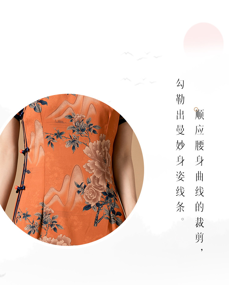 商品名称:时尚旗袍改良款斜襟立领中长复古旗袍连衣裙 985951