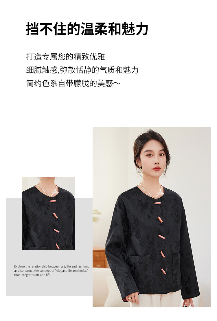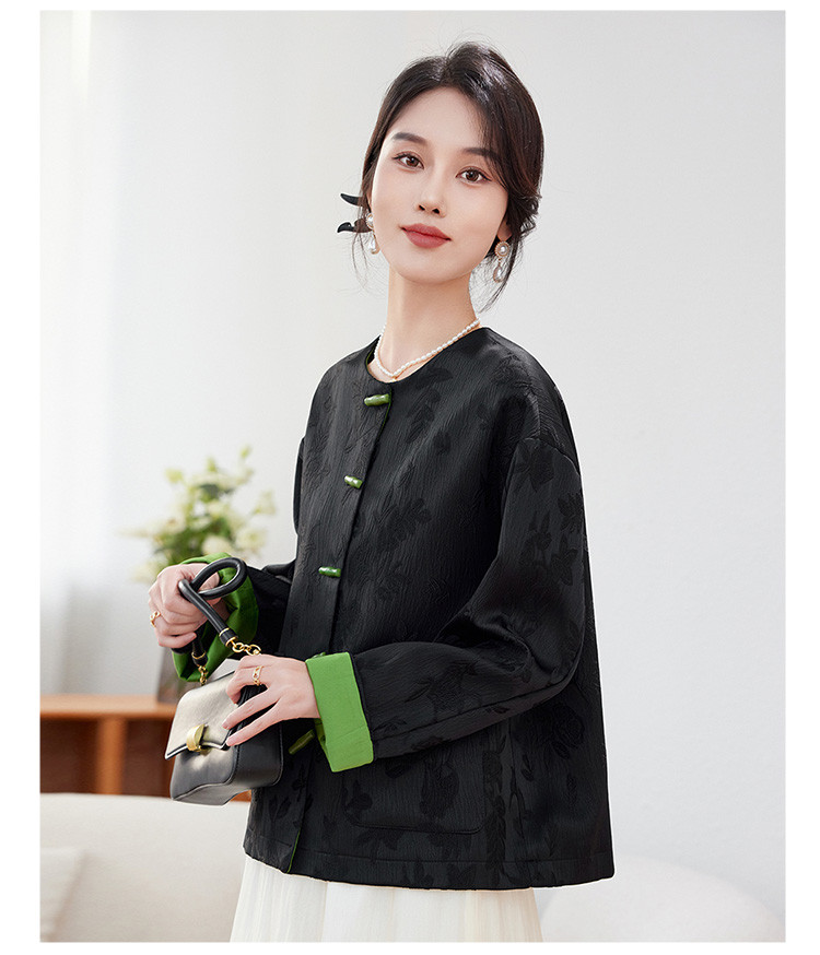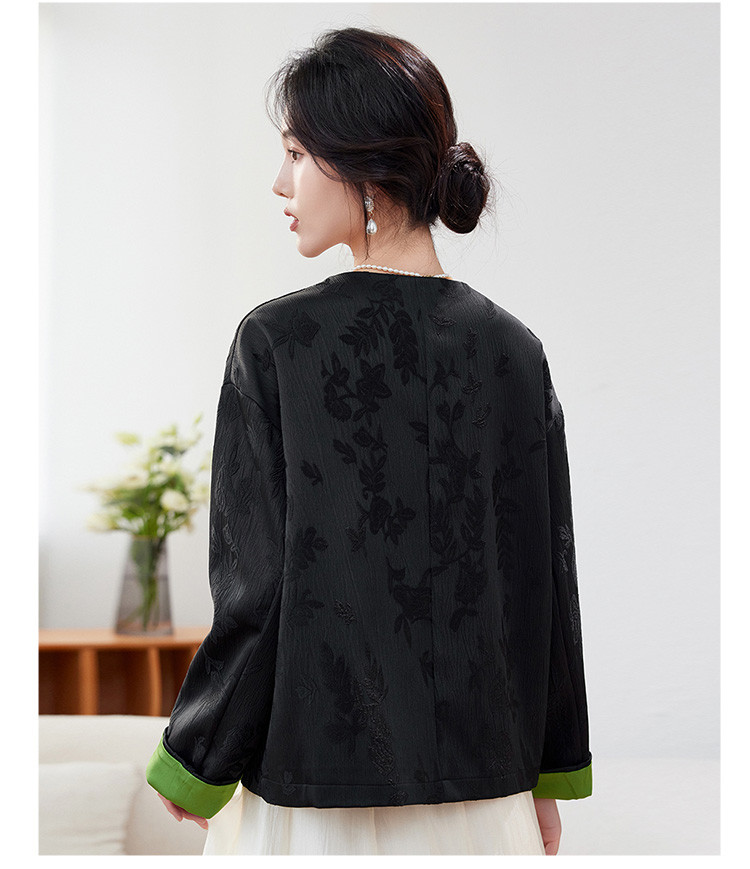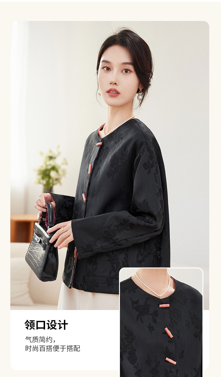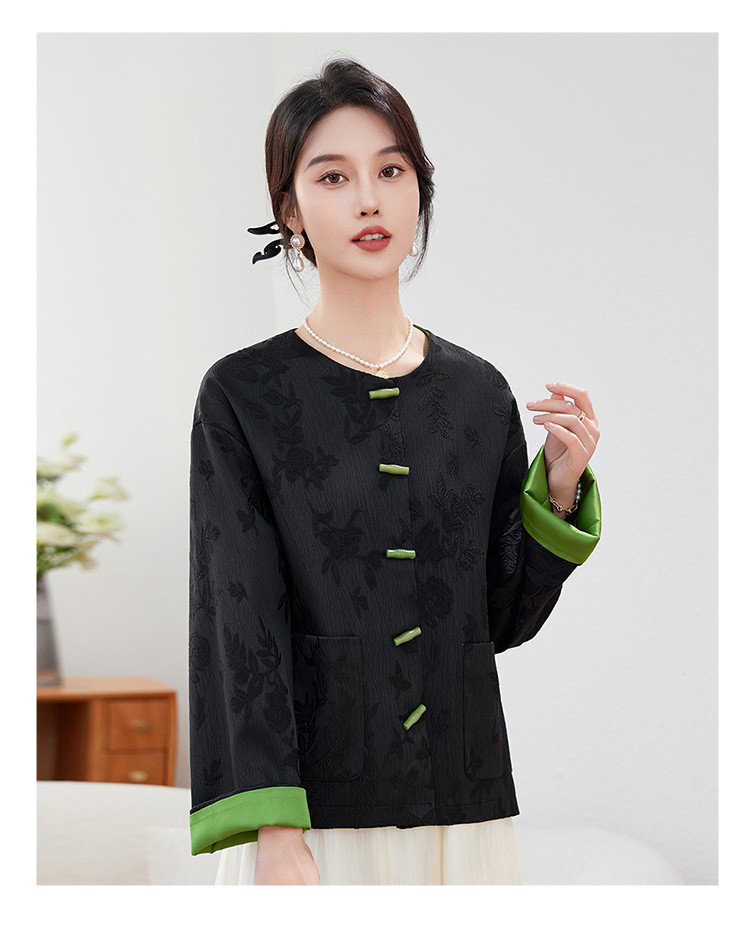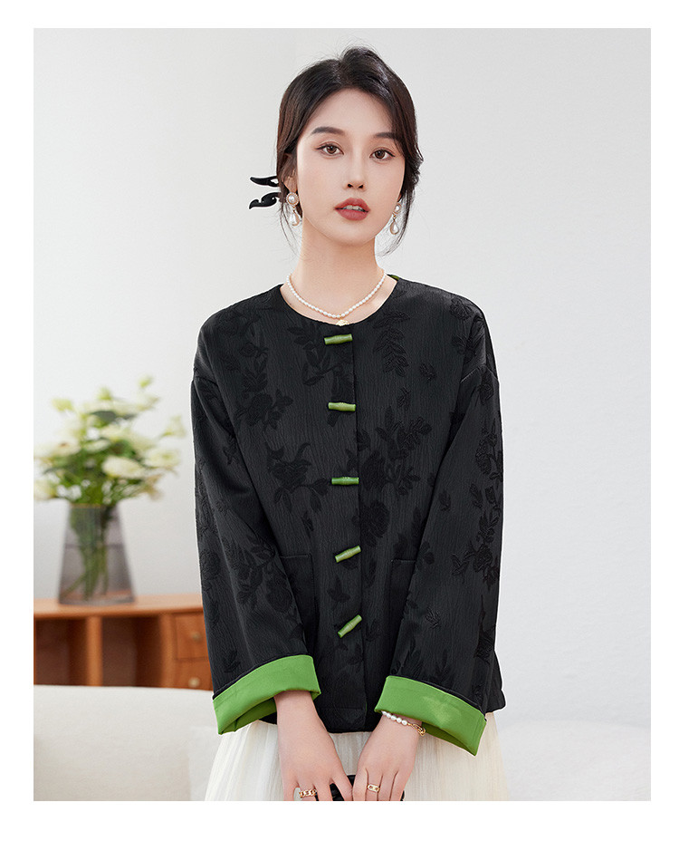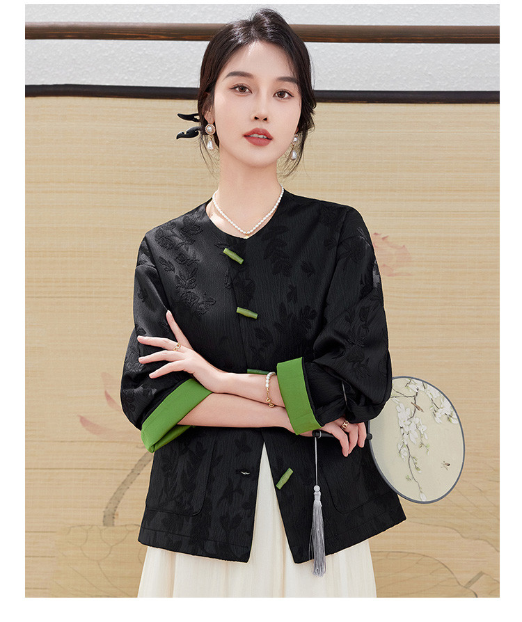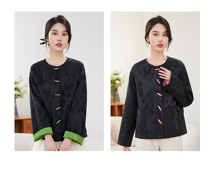 商品名称:2024春秋新款高端复古新中式女式国风拼色落肩袖时尚休闲外套 756959