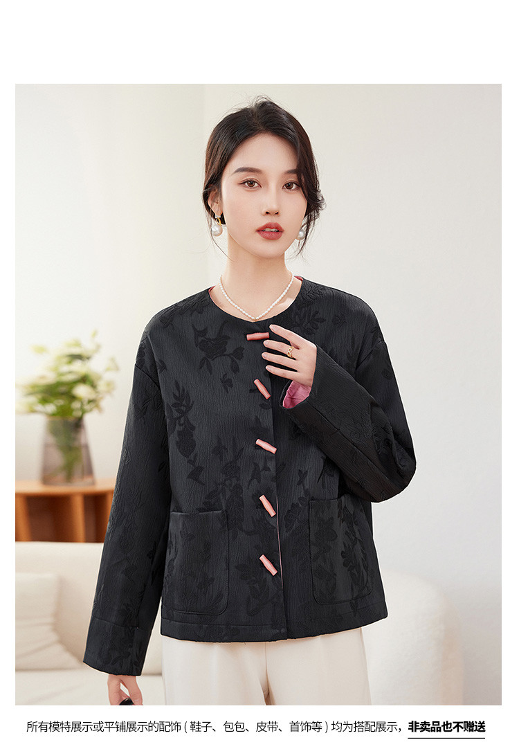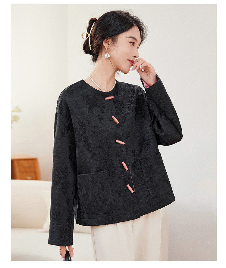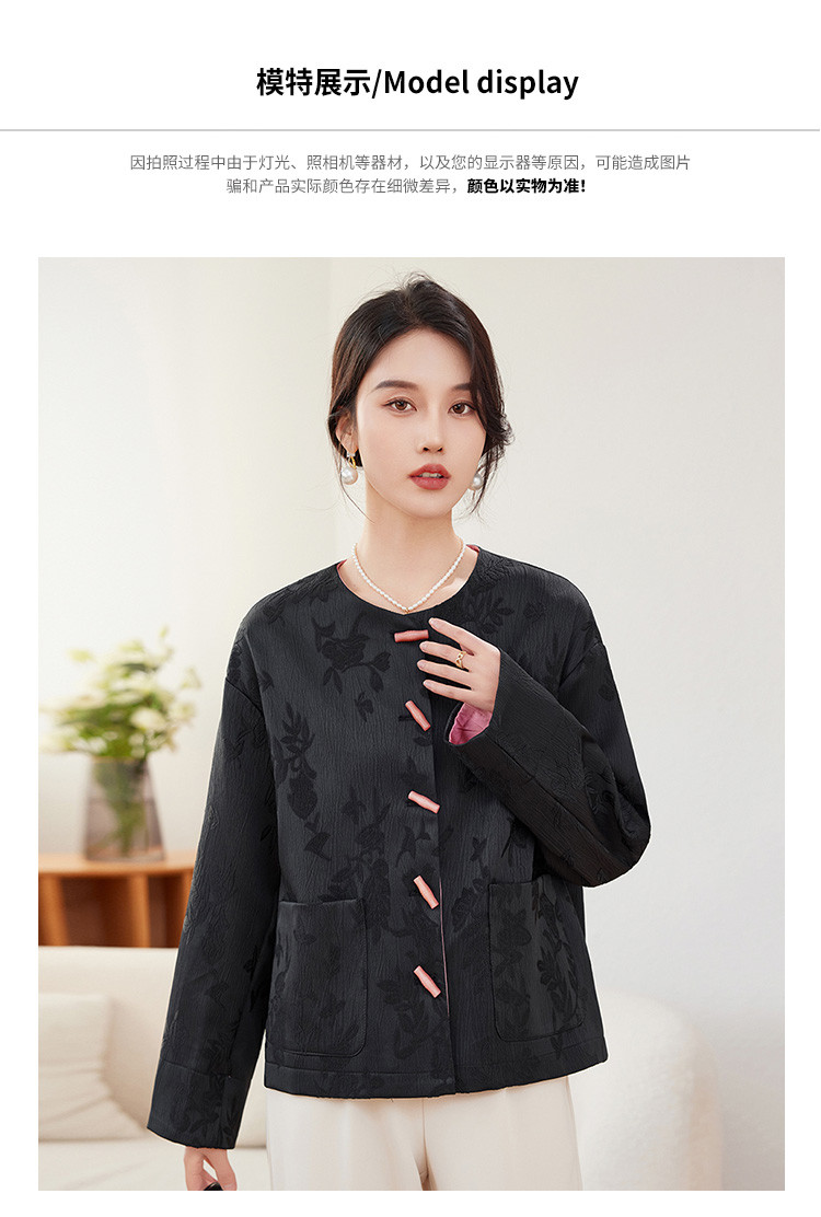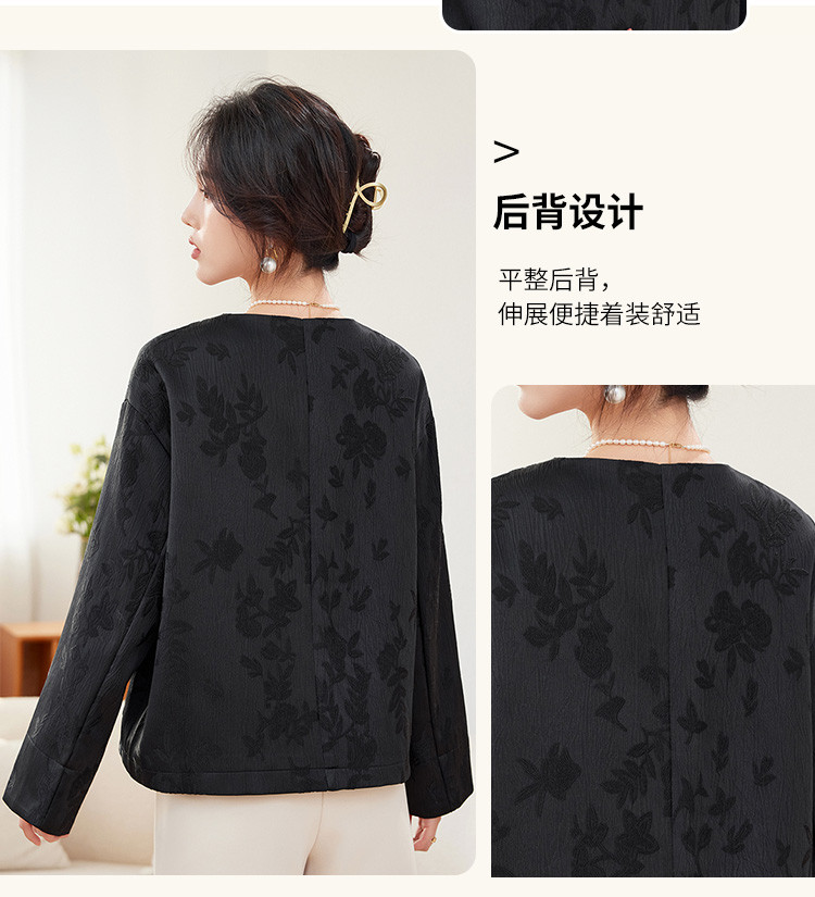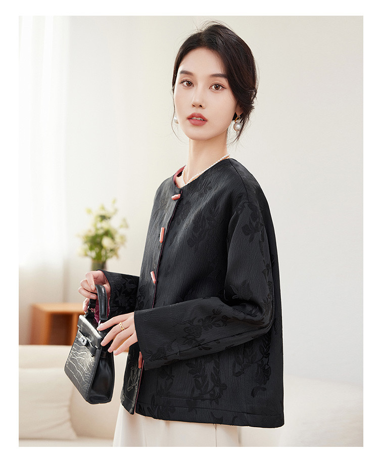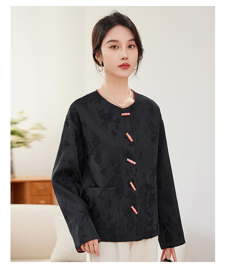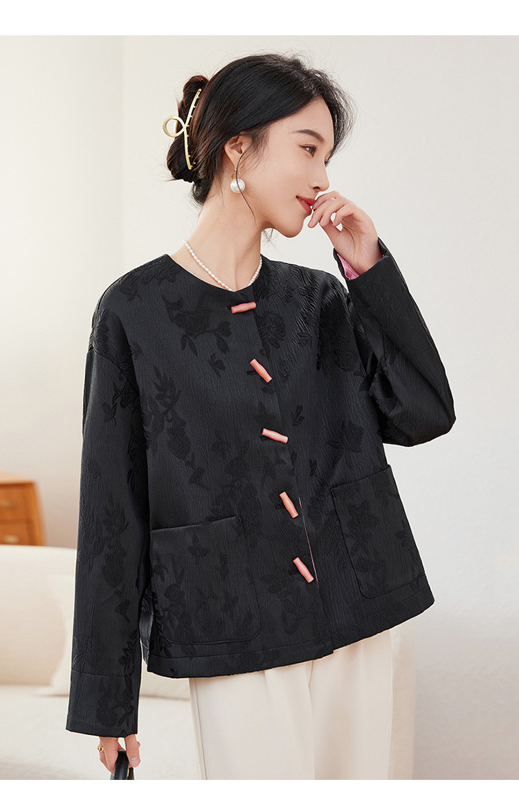 商品名称:2024春秋新款高端复古新中式女式国风拼色落肩袖时尚休闲外套 756959