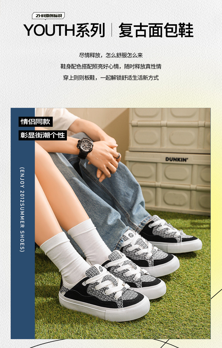 情侣鞋【出街必备】舒适板鞋男鞋春夏透气复古面包鞋休闲鞋女鞋 410496