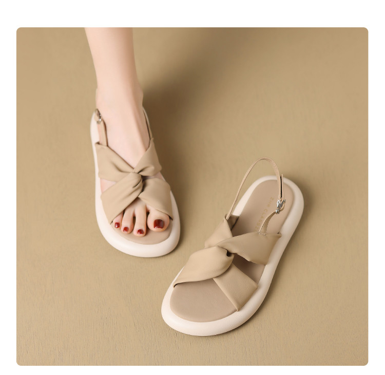 【优雅褶皱】舒适柔软通勤鞋女沙滩凉鞋夏季凉鞋女款时尚女士凉鞋 405440