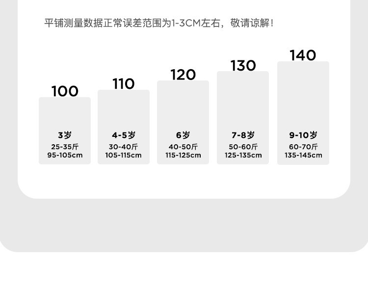 | 尺码 | 衣长(cm) | 肩宽(cm) | 袖长(cm) | 适合年龄 | 胸围(cm) | 号型 |