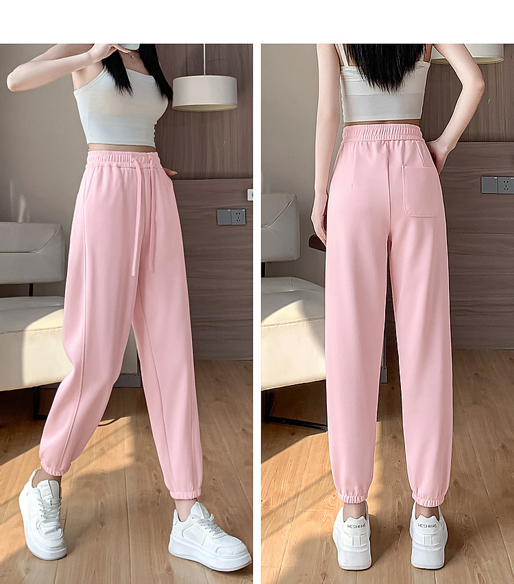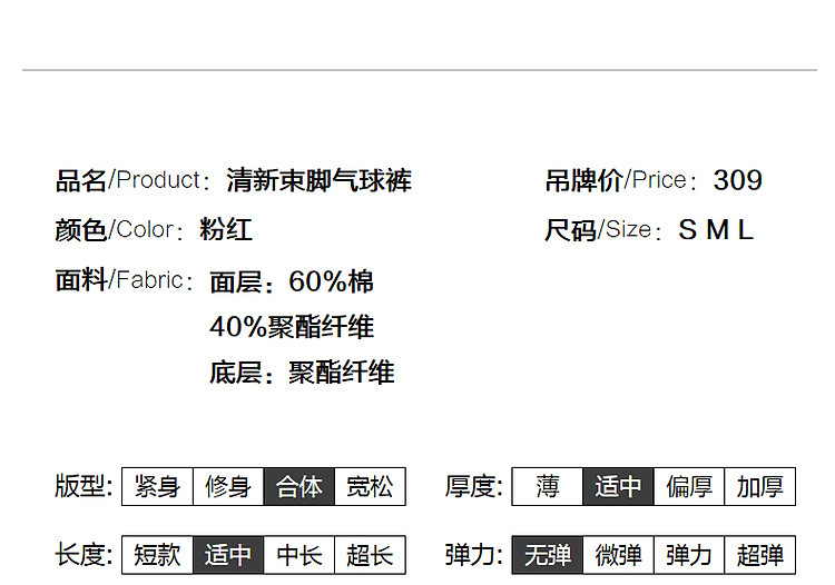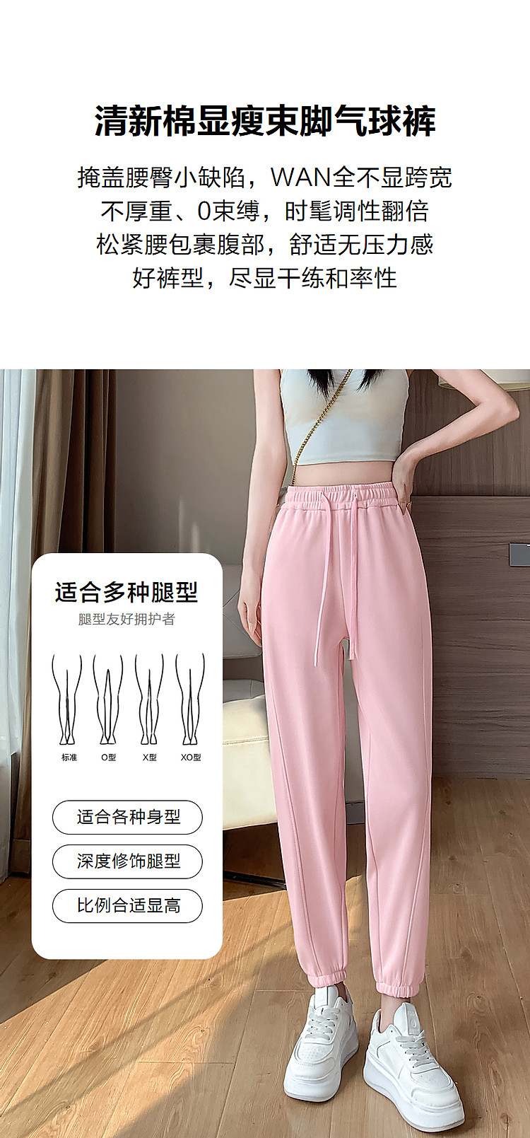 商品名称:【不挑腿型系列】春秋清新棉束脚气球裤微弹松紧腰系绳休闲裤 596673
