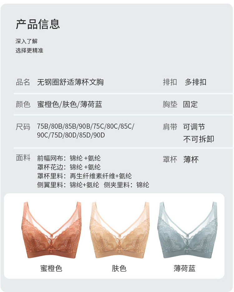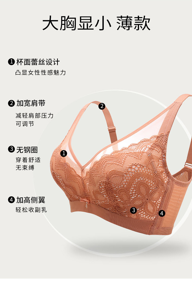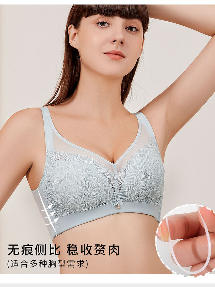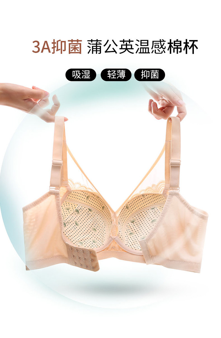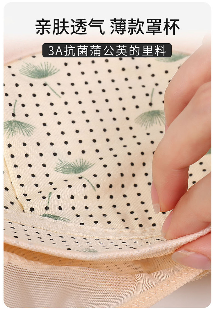 商品名称:【3A抑菌里料】无钢圈舒适薄款聚拢上托调整型女士内衣女文胸罩 038750