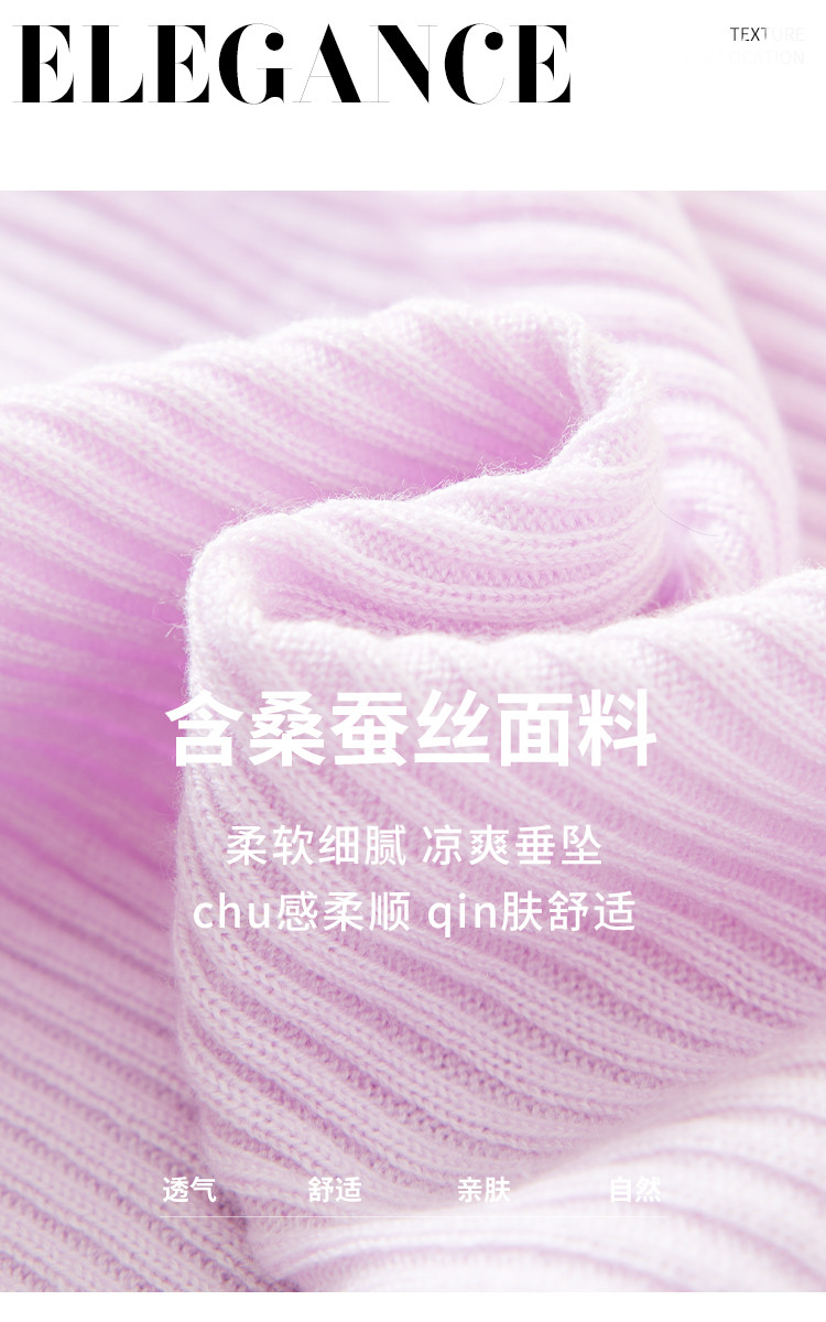 【含桑蚕丝】纯色圆领坑条女士织衫短袖夏t恤女 220819