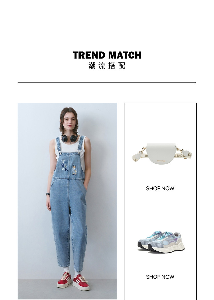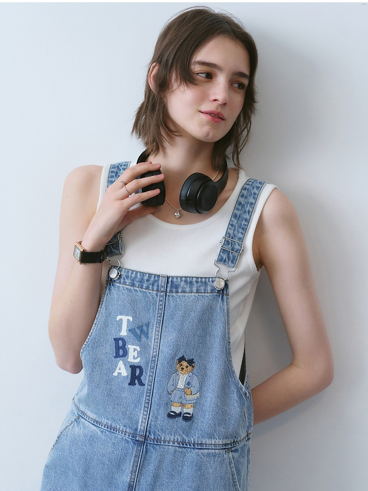 牛仔裤小熊女装宽松活力休闲牛仔裤背带裤长裤 495553