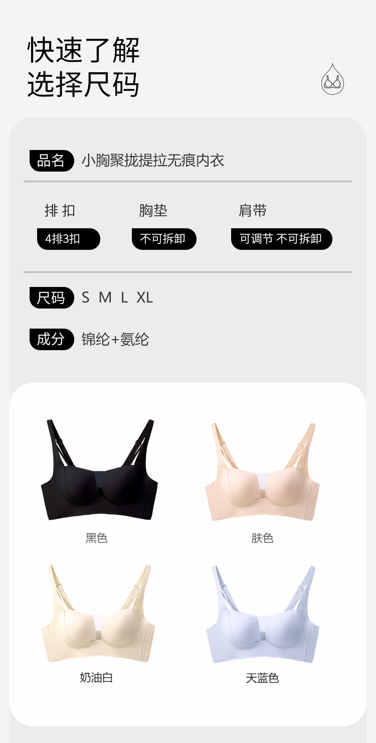 商品名称:【蕾丝光面一体杯】内衣女小胸聚拢立体不空杯无痕软支撑文胸罩女 083550