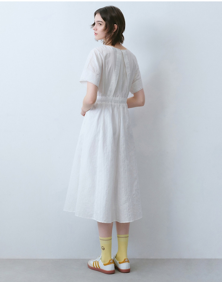 商品名称:小熊女装夏季短袖法式优雅时髦气质收腰连衣裙泡泡布 704129