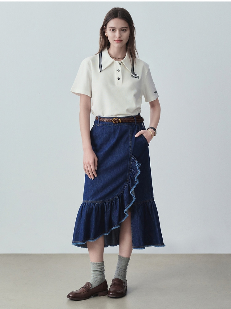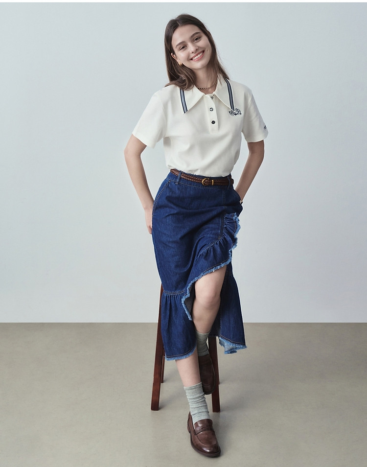 【熊柔棉】小熊女装夏季款POLO短袖T恤白色时尚 120385