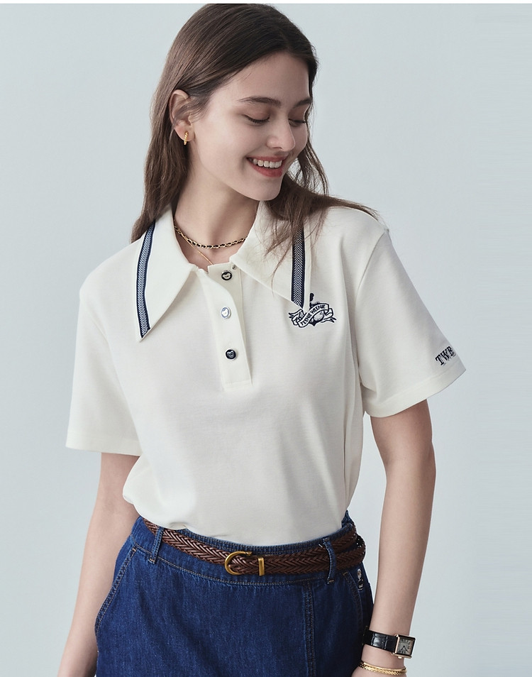 POLO衫女夏季学院风简约时尚刺绣短袖T恤上衣女 802625
