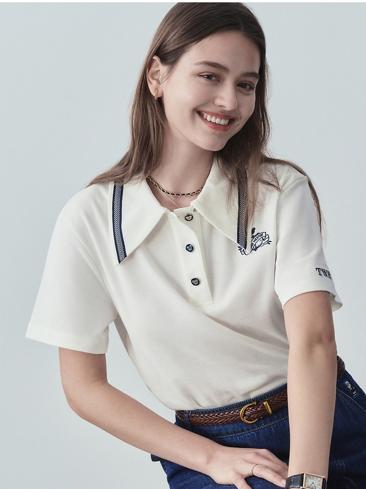 商品名称:【熊柔棉】小熊女装夏季款POLO短袖T恤白色时尚 120385