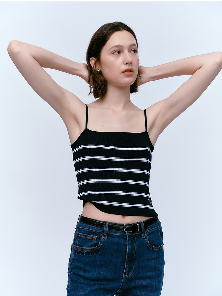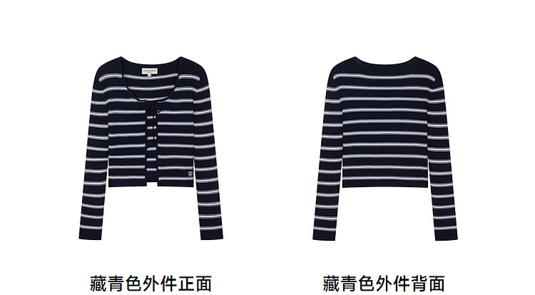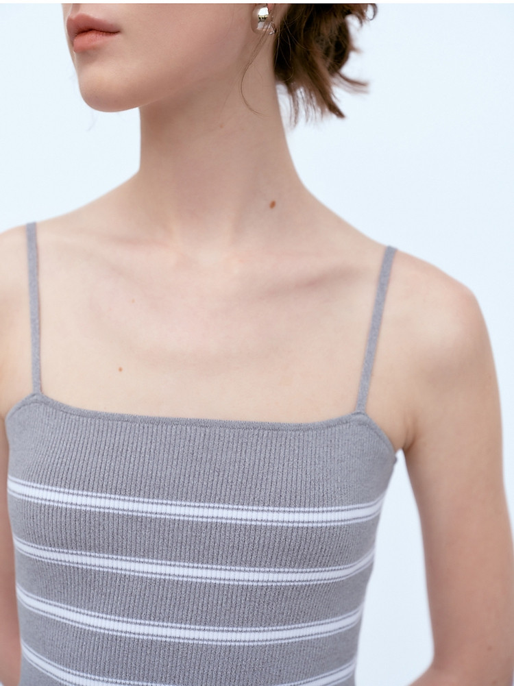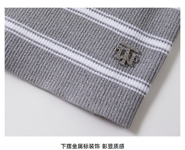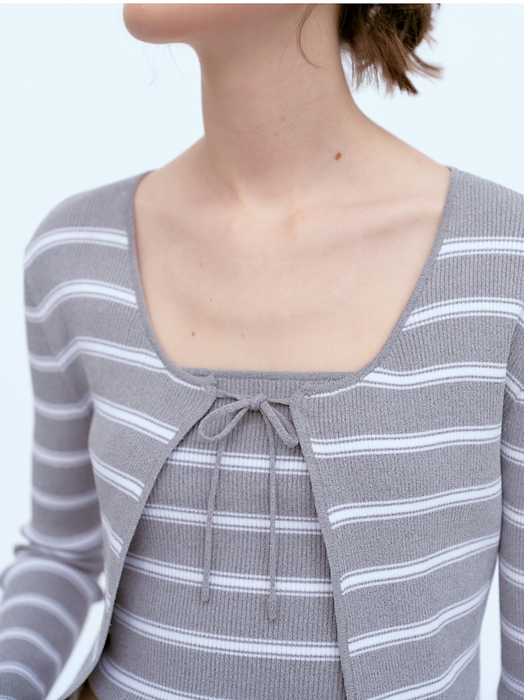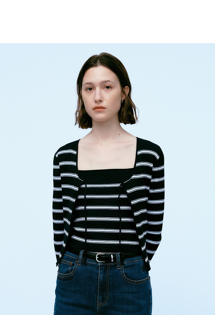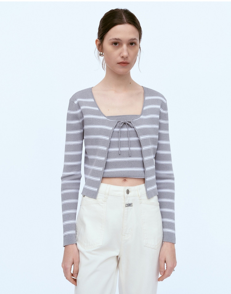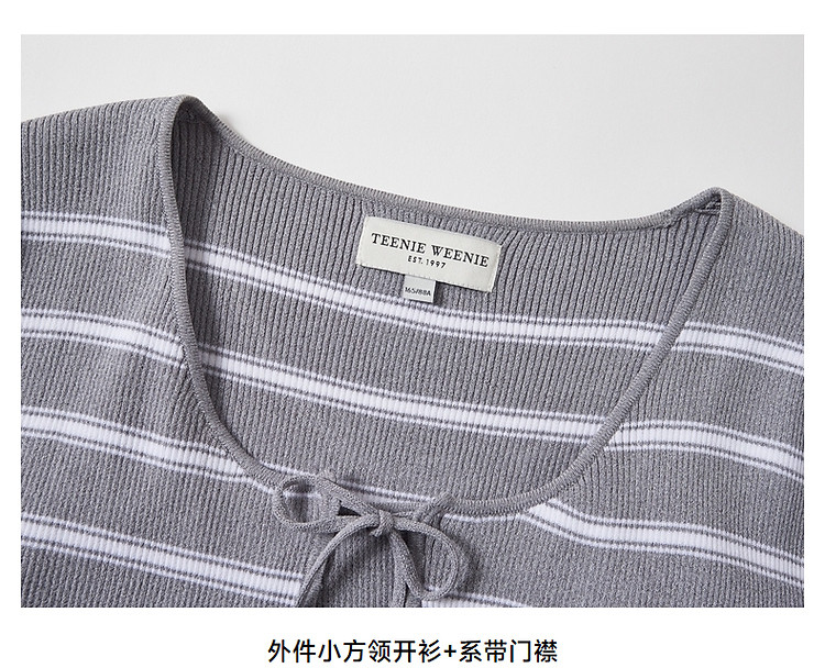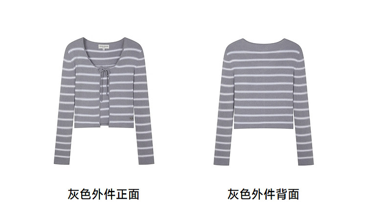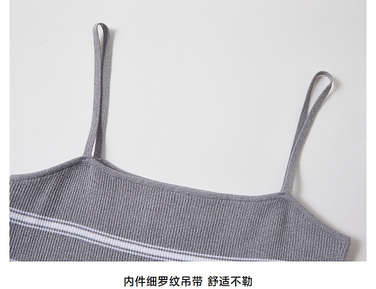 商品名称:小熊格雷系带条纹两件套针织衫外套吊带背心女装上装 954049