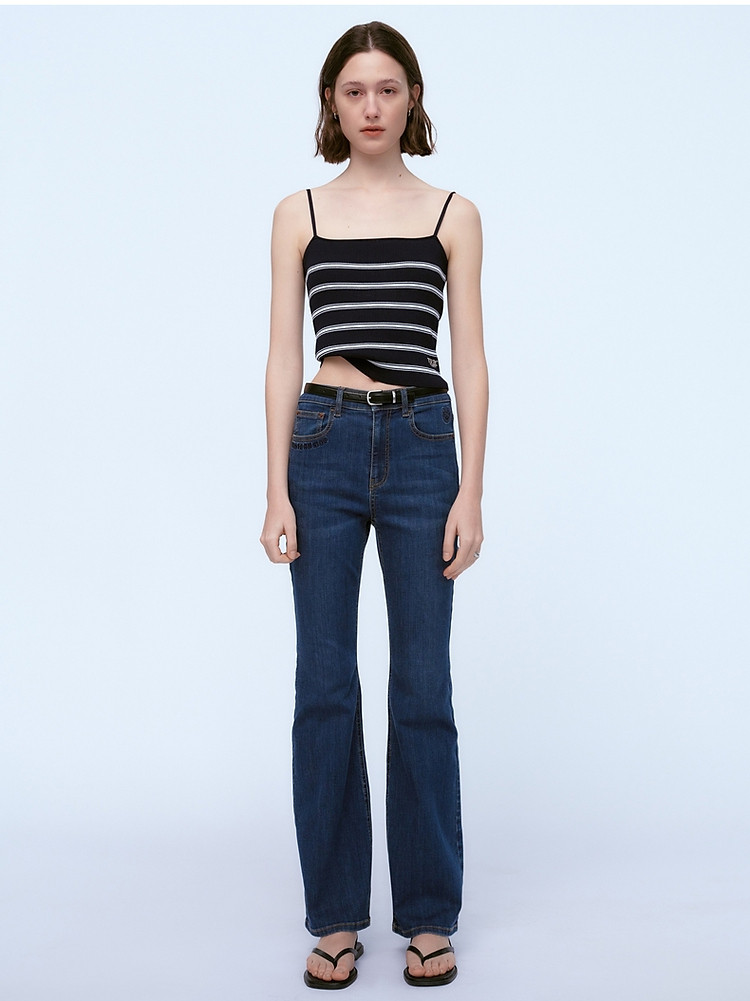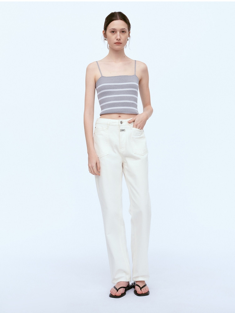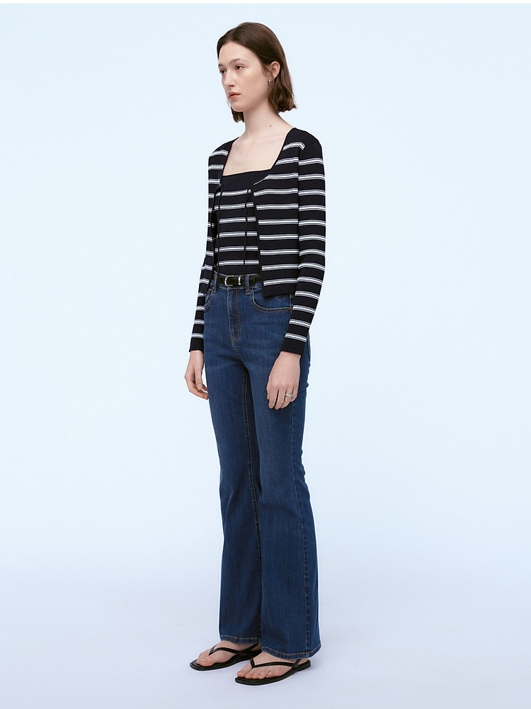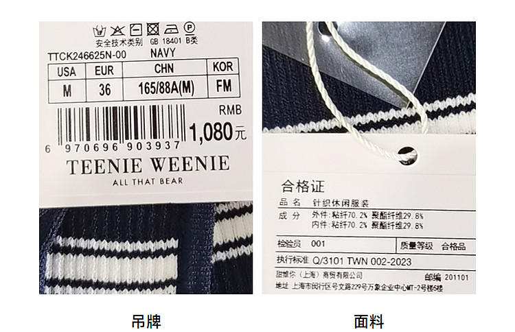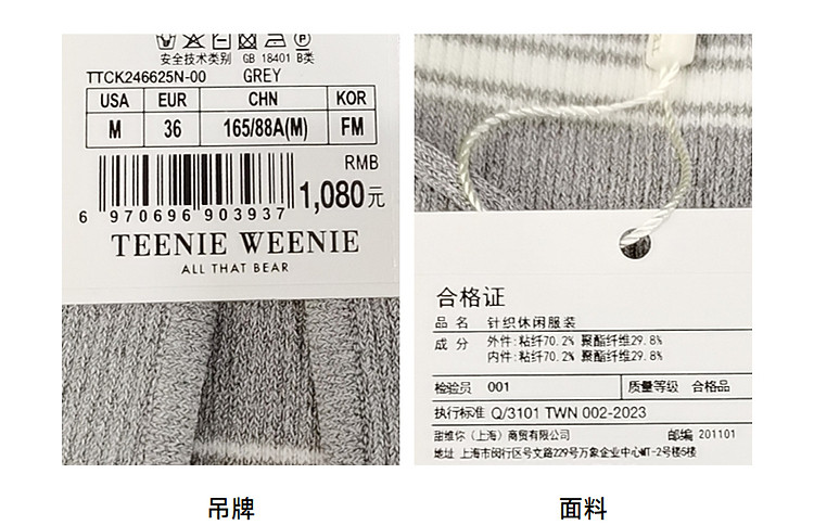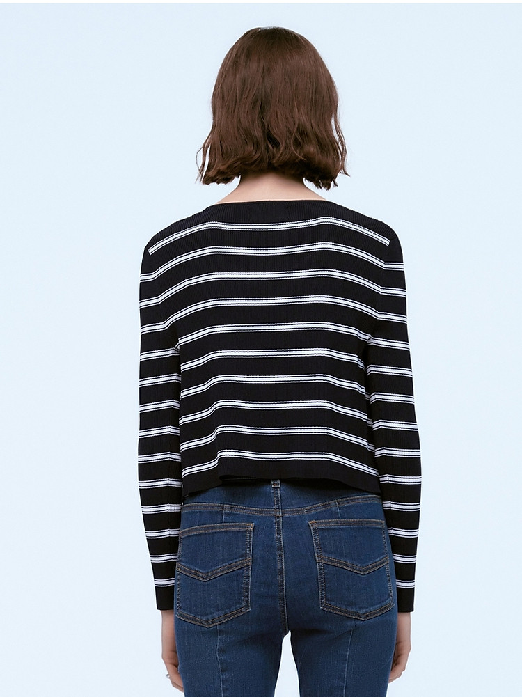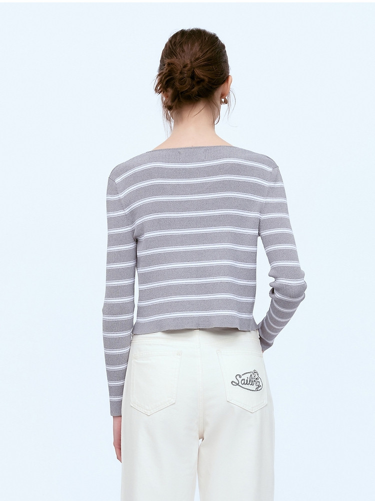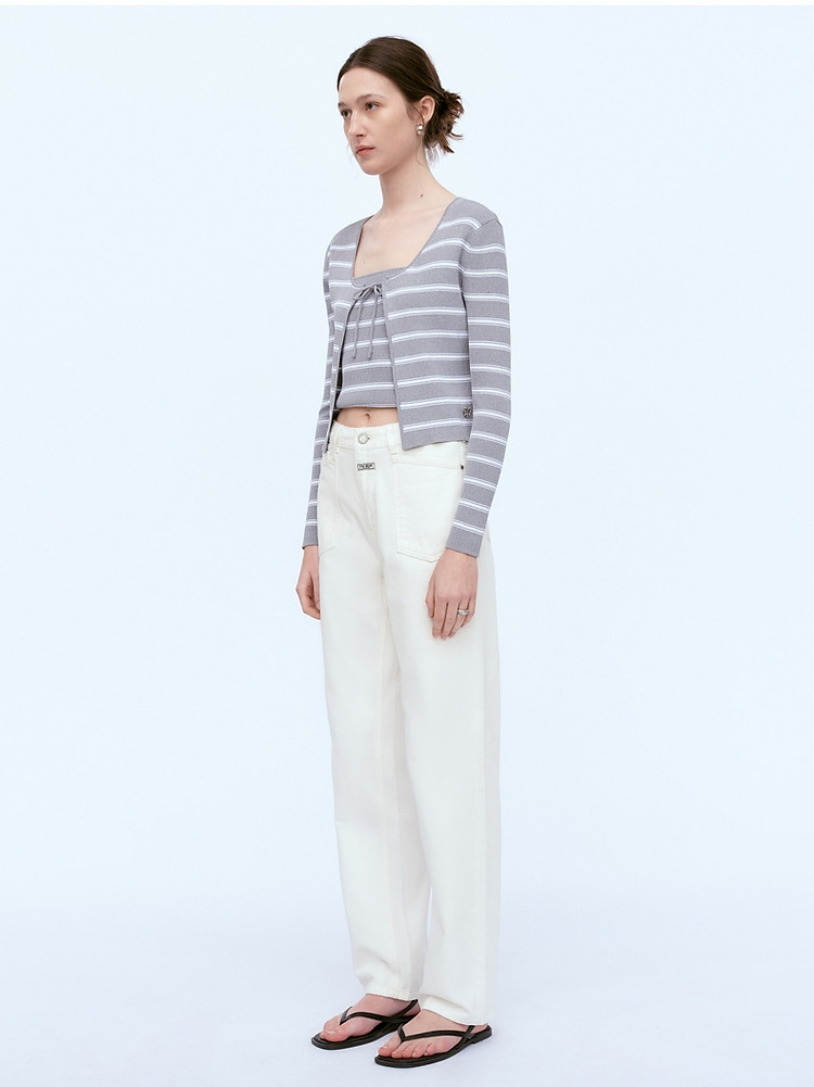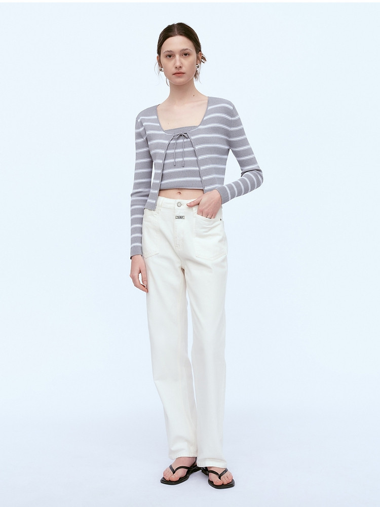 商品名称:小熊格雷系带条纹两件套针织衫外套吊带背心女装上装 954049