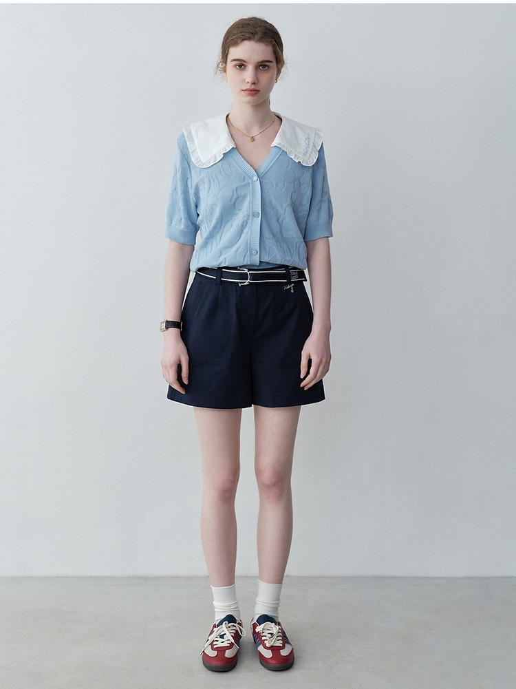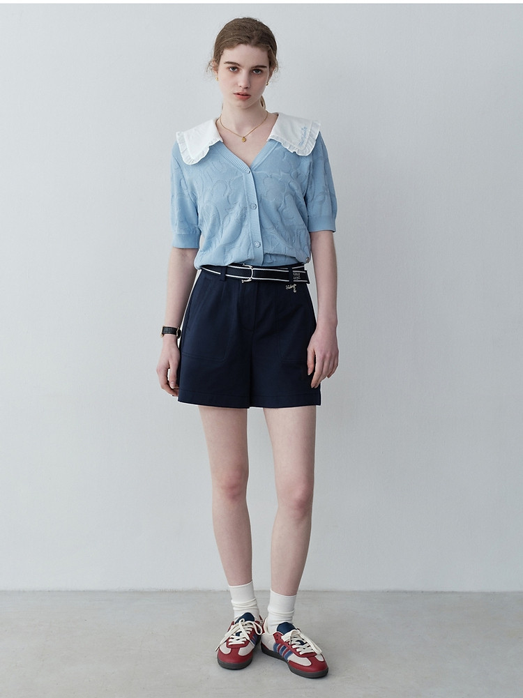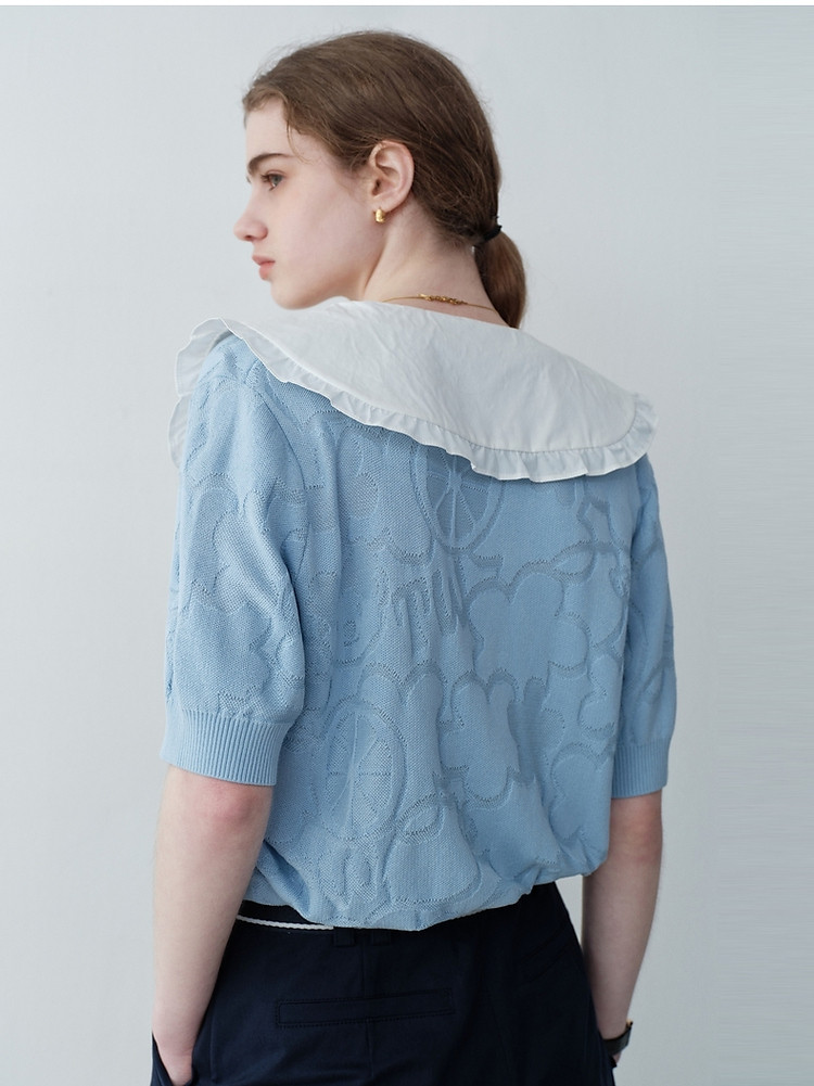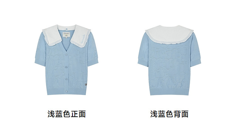 商品名称:小熊女装夏装莫代尔棉娃娃领针织短袖毛衫 206401