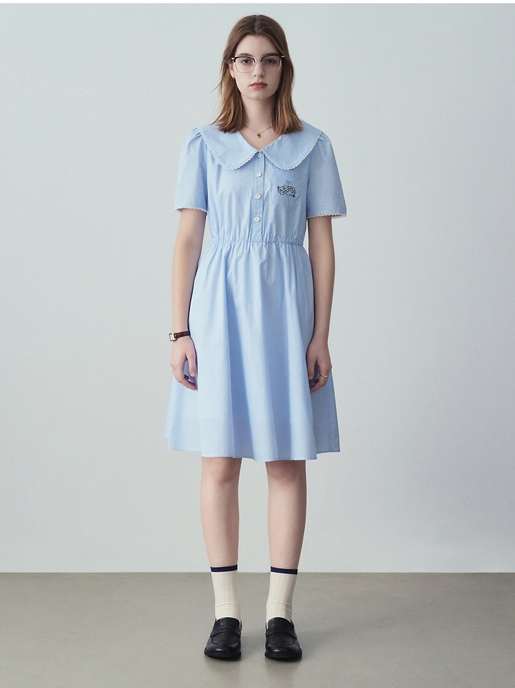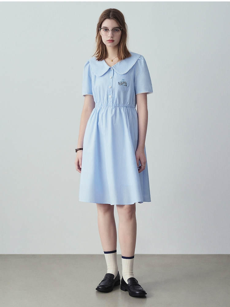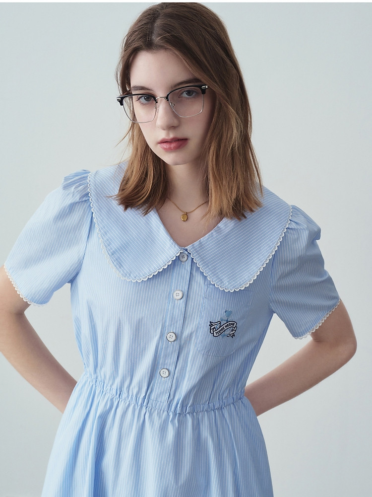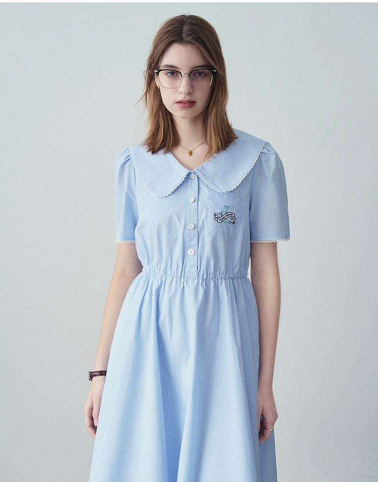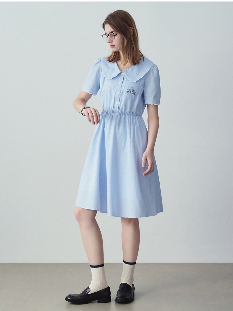 小熊夏装宽松休闲娃娃领连衣裙泡泡袖裙子女士 470721