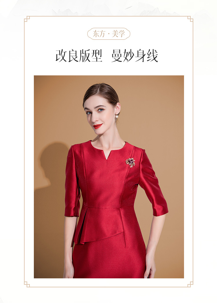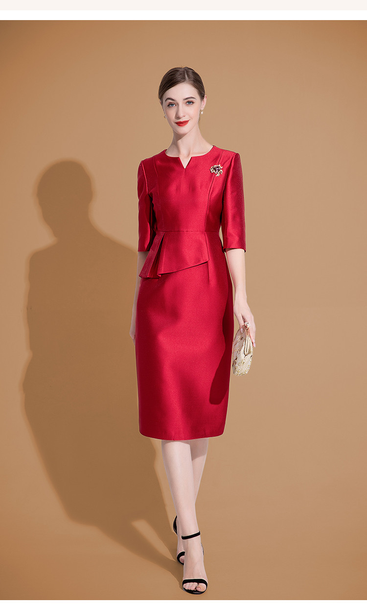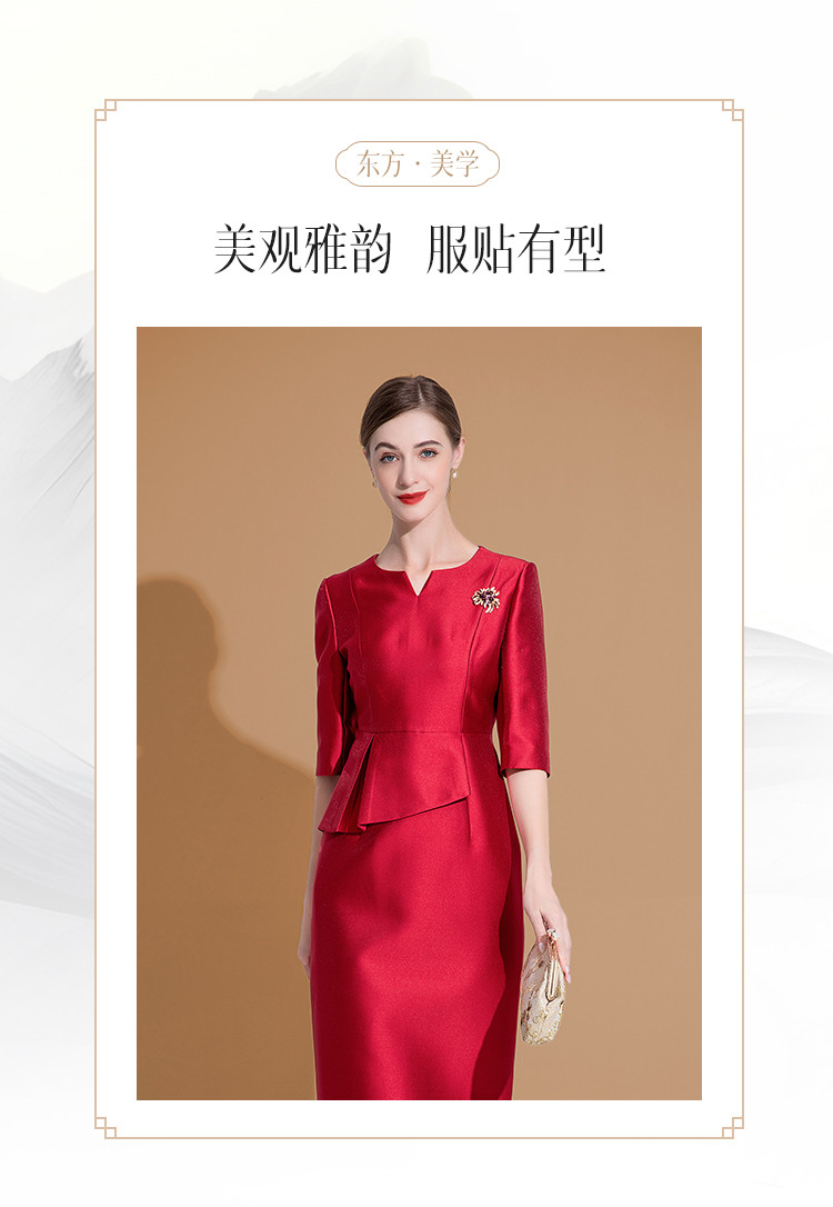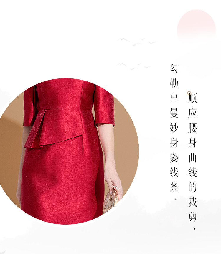 商品名称:红色连衣裙女春季气质优雅高贵包臀裙收腰轻奢礼服裙 667231